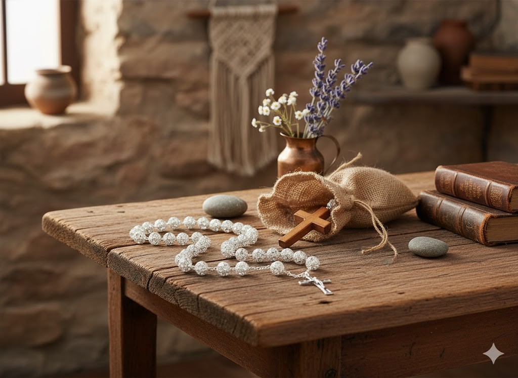 Różaniec to modlitwa prowadząca przez tajemnice życia Jezusa i Maryi. Kryształy Preciosa wnoszą do niej element światła i czystości – symbol Bożej obecności i duchowego olśnienia. Ich blask przypomina o świetle Chrystusa rozjaśniającym codzienność wierzącego.
