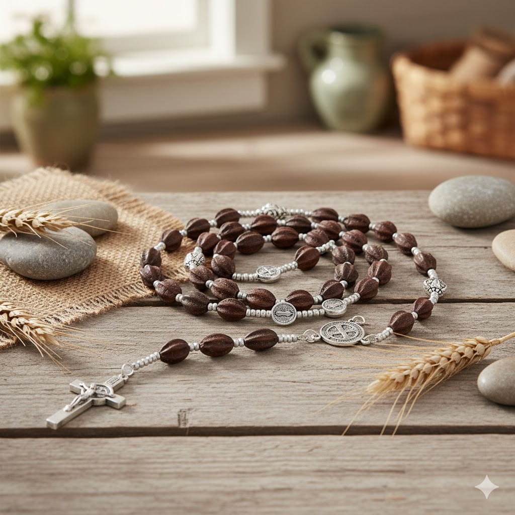 Różaniec benedyktyński z ziaren egzotycznych – modlitwa z mocą św. Benedykta