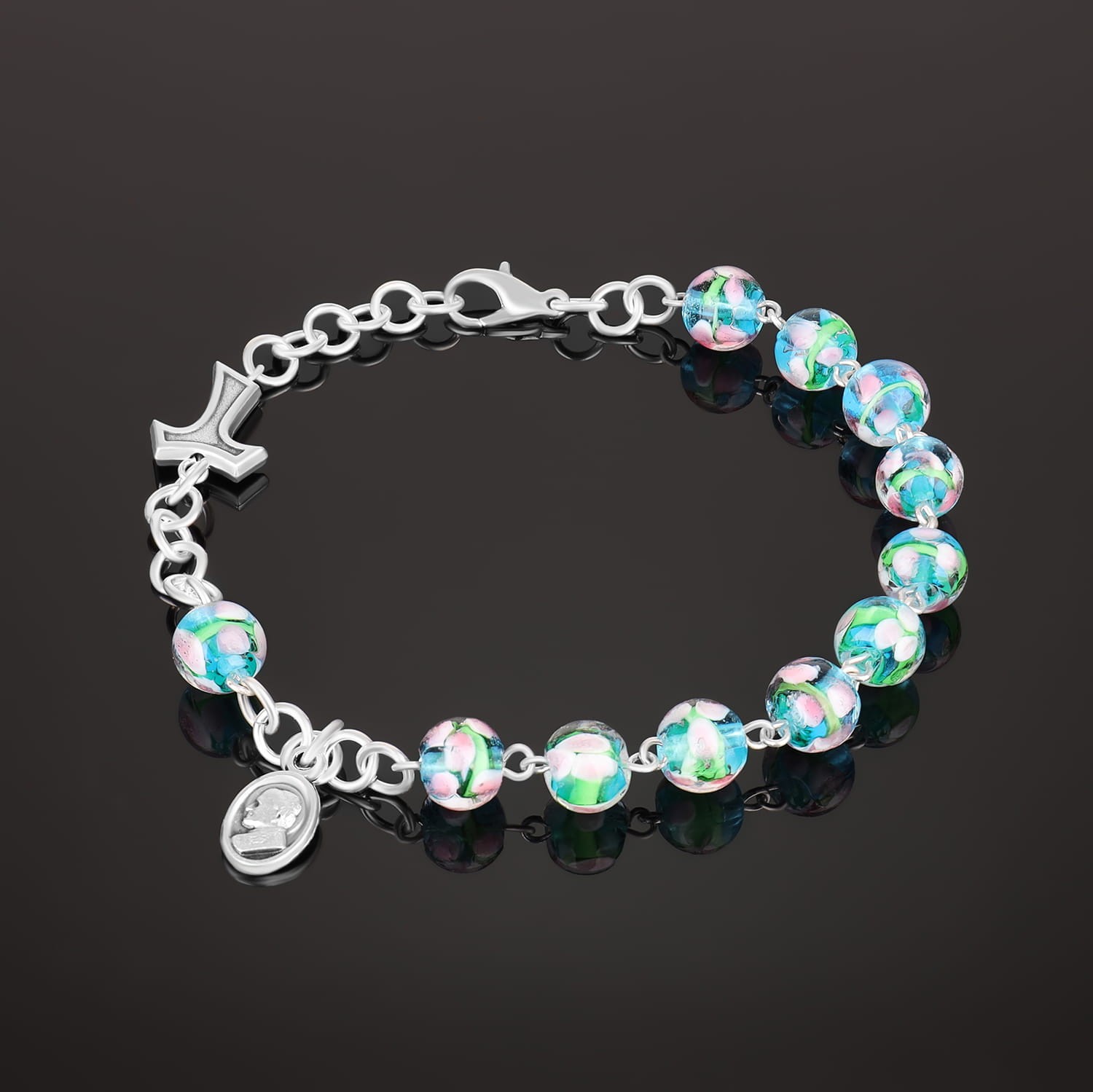 Elegancka i symboliczna bransoletka różańcowa wykonana z wyjątkowego szkła weneckiego, które od wieków słynie z niezwykłej trwałości i pięknych barw. Każdy paciorek powstaje w tradycyjnej technice rzemieślniczej, dzięki czemu jest niepowtarzalny i jedyny w swoim rodzaju.