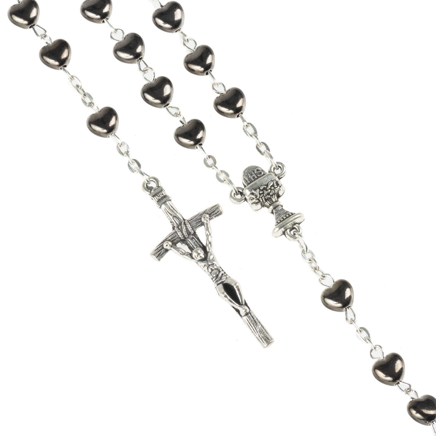 Różaniec grafitowe serduszka - IHS - Pierwsza Komunia Święta - 6 mm - plastik