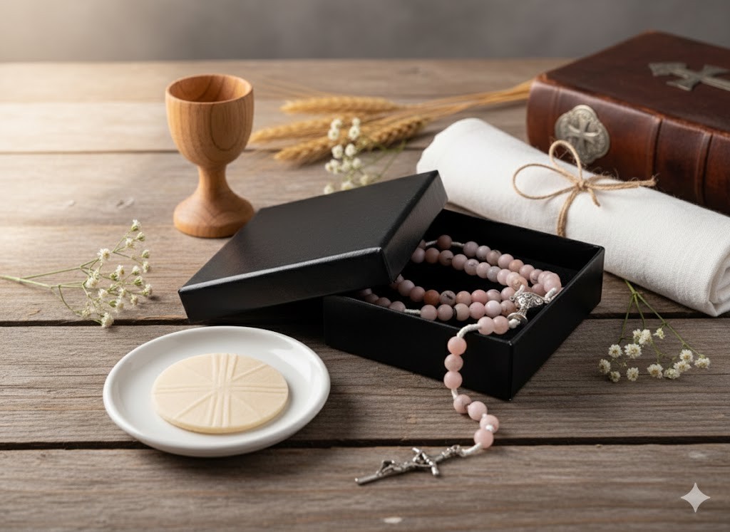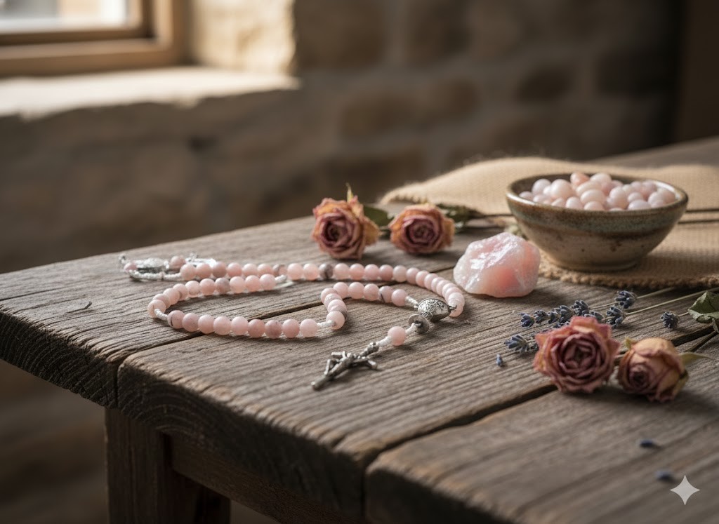 Opal różowy jest kamieniem, któremu tradycyjnie przypisuje się znaczenie wierności, pokoju serca i równowagi. Jego łagodna barwa nawiązuje do czystości, delikatności i miłości — wartości pięknie współbrzmiących z sakramentem Eucharystii.