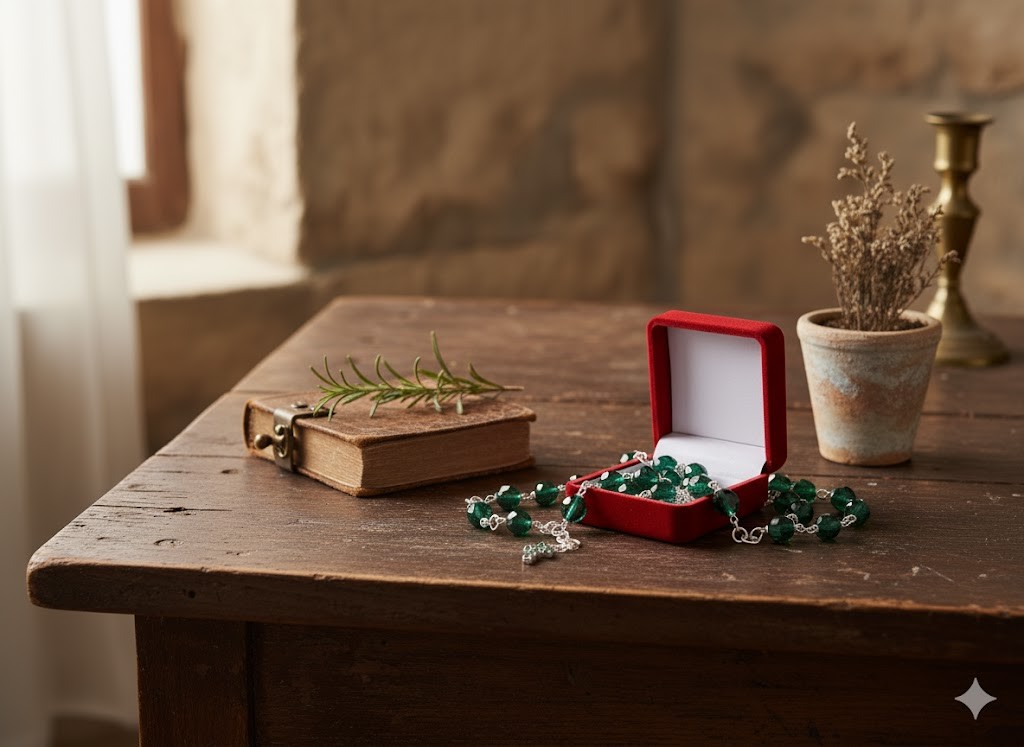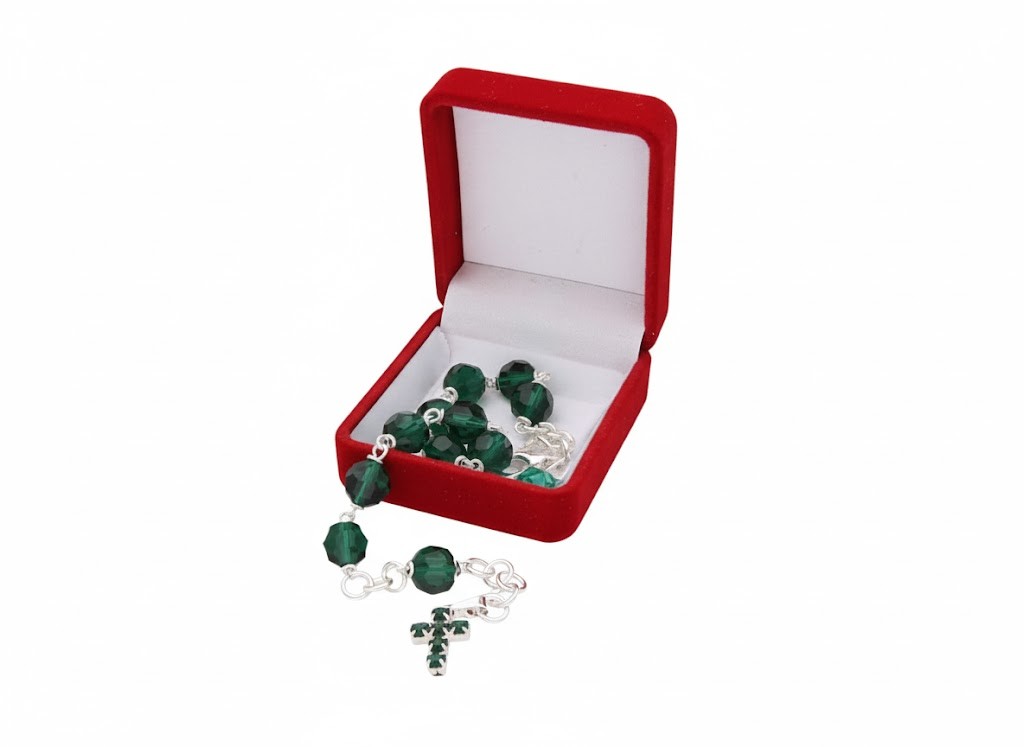 Przedstawiamy wyjątkowy różaniec „10-tka” na rękę, wykonany z wysokiej jakości szkła kryształkowego w odcieniu EMERALD (zielonym). Każdy koralik ma ok. 8 mm średnicy, a krzyżyk został starannie osadzony z cyrkoniami Preciosa. Różaniec jest zaprojektowany jako modlitewny dodatek noszony na ręce – po rozpięciu ma długość ok. 23 cm. Całość zapakowana w małe, welurowe pudełeczko – gotowa do wręczenia lub jako pamiątka wiary. Produkt polski, z dbałością o detale: szkło kryształkowe, ręczne wykończenie – co sprawia, że wyróżnia się jakością i estetyką.