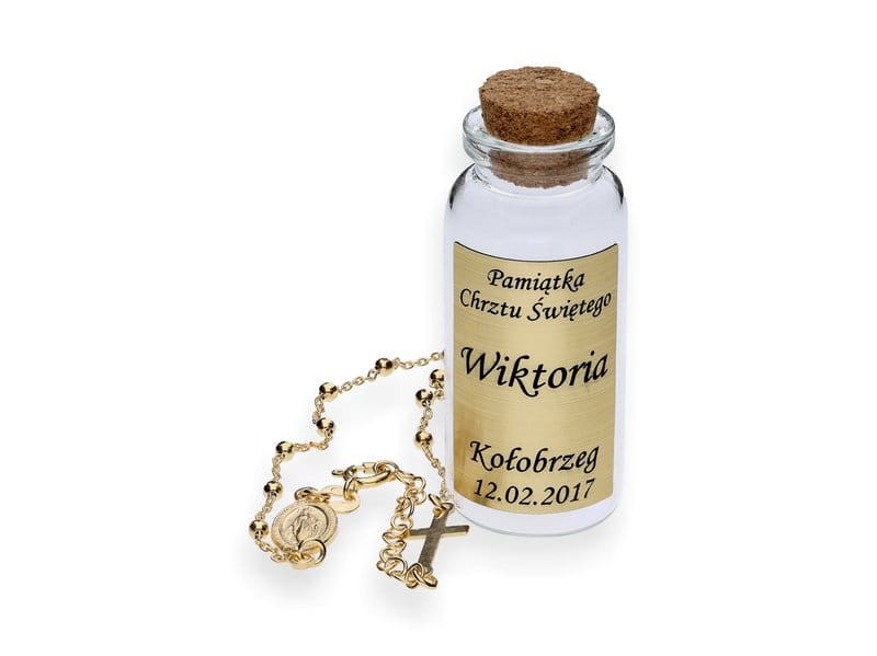 Pozłacany Różaniec w Butelce z Grawerem – Idealny Prezent na Chrzest