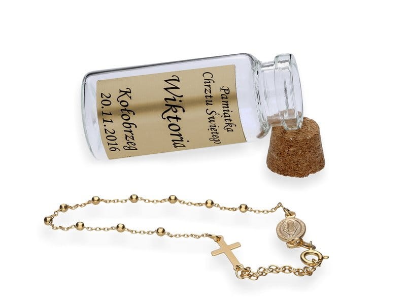 Różaniec to nie tylko symbol wiary, ale także piękna pamiątka na całe życie. Pozłacany różaniec umieszczony w eleganckiej butelce z możliwością dodania osobistego graweru to wyjątkowy prezent, który doskonale sprawdzi się na chrzest.