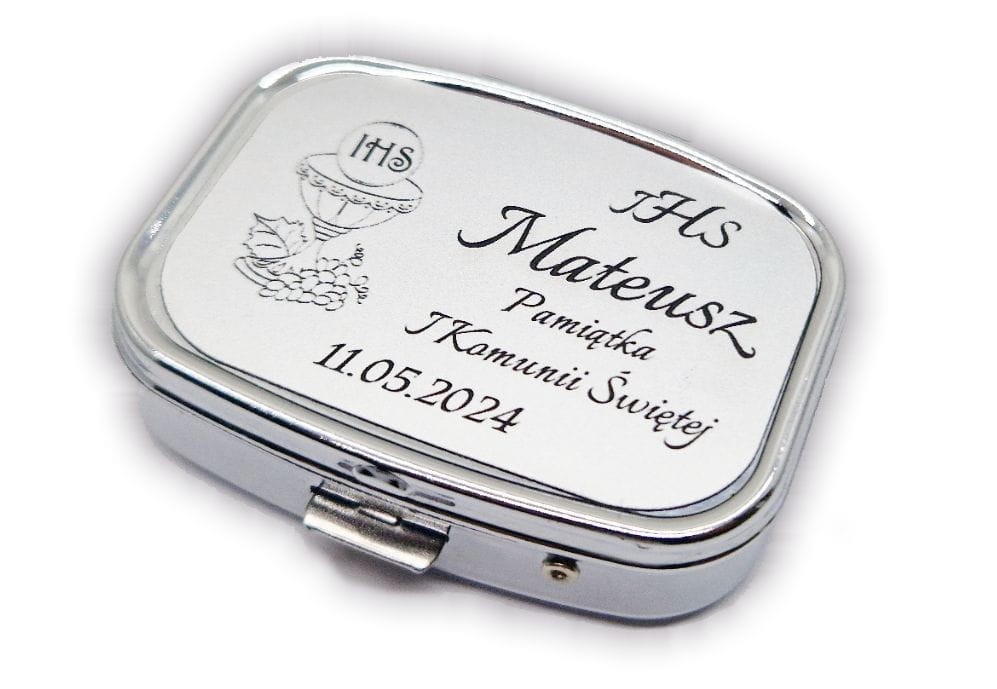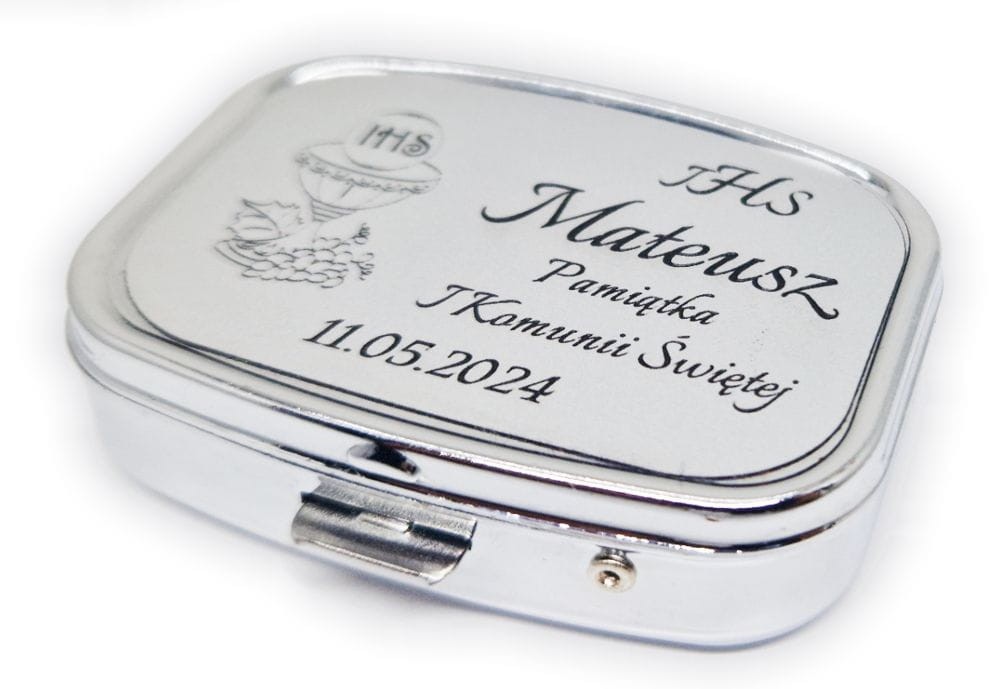 Na wieku pudełeczka grawerujemy imię dziecka + datę uroczystości