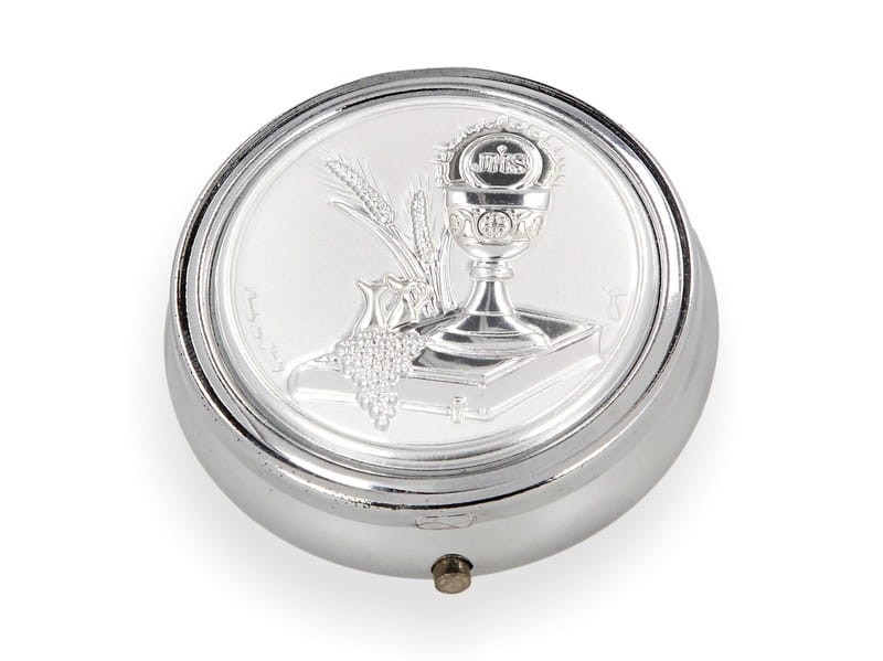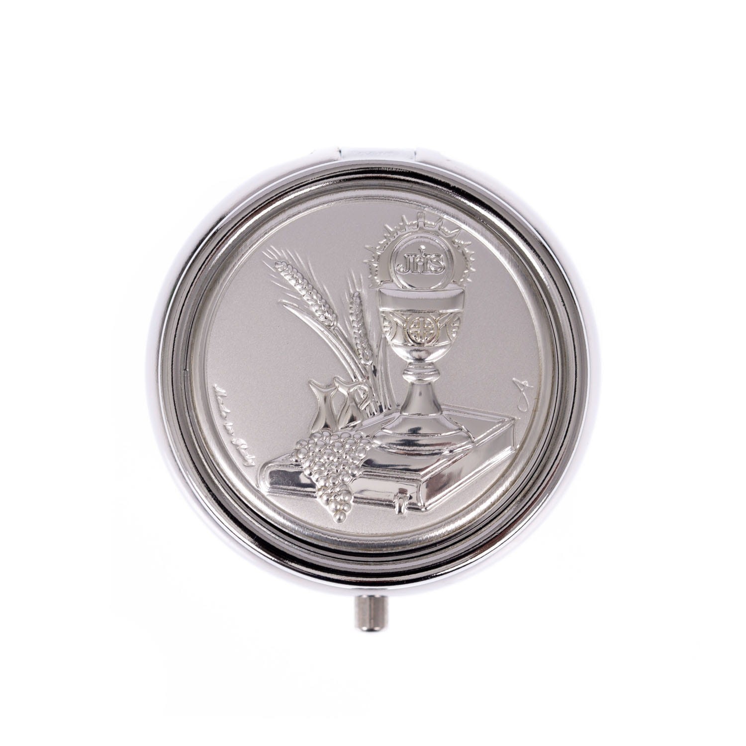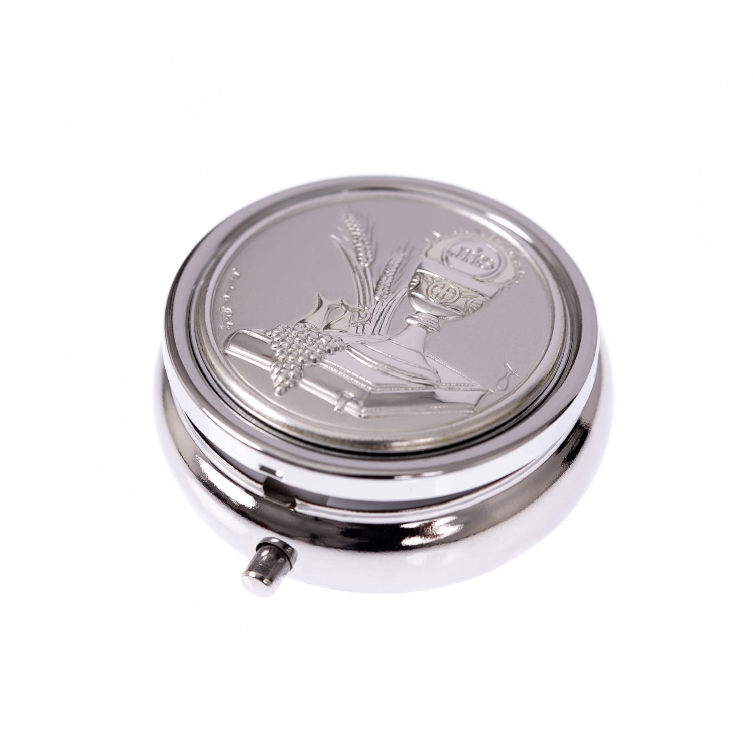 Piękne pudełeczko (w kolorze srebrnym) z srebrnym wizerunkiem HOSTII IHS - a to wszystko wraz z przepięknym różańcem w zestawie!
