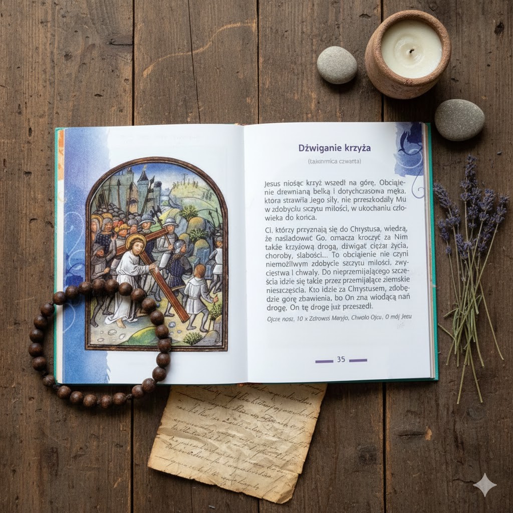 Jeśli chcesz mieć zawsze pod ręką tekst wszystkich tajemnic różańca, sięgnij po nasze „Tajemnice różańcowe”. To praktyczne pomoce, które ułatwiają skupienie na modlitwie, prowadzą przez kolejne części różańca i pomagają głębiej przeżywać spotkanie z Jezusem i Maryją.