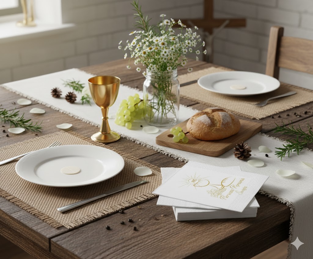 Dekoracyjny akcent, serwetki z motywem komunijnym
