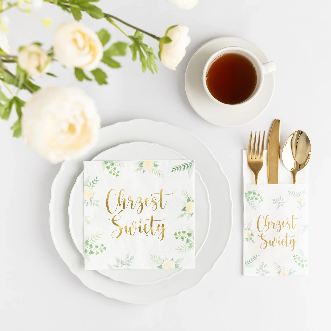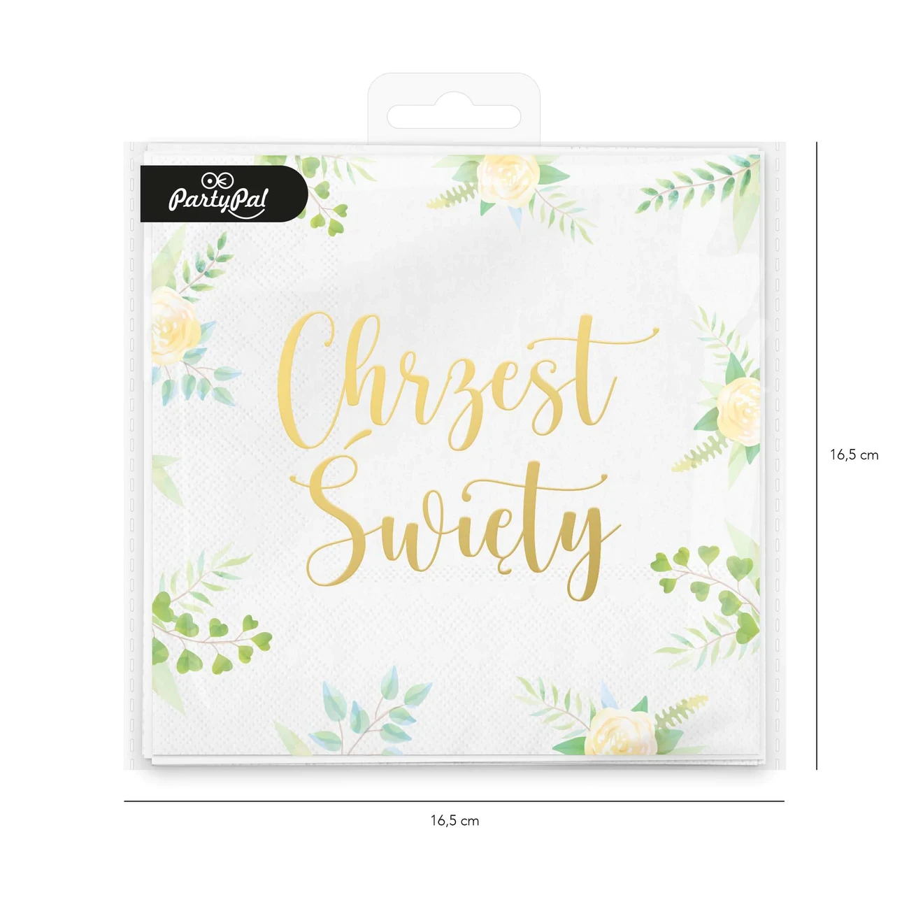 - na serwetce znajduje się napis Chrzest Święty, w eleganckim złotym odcieniu