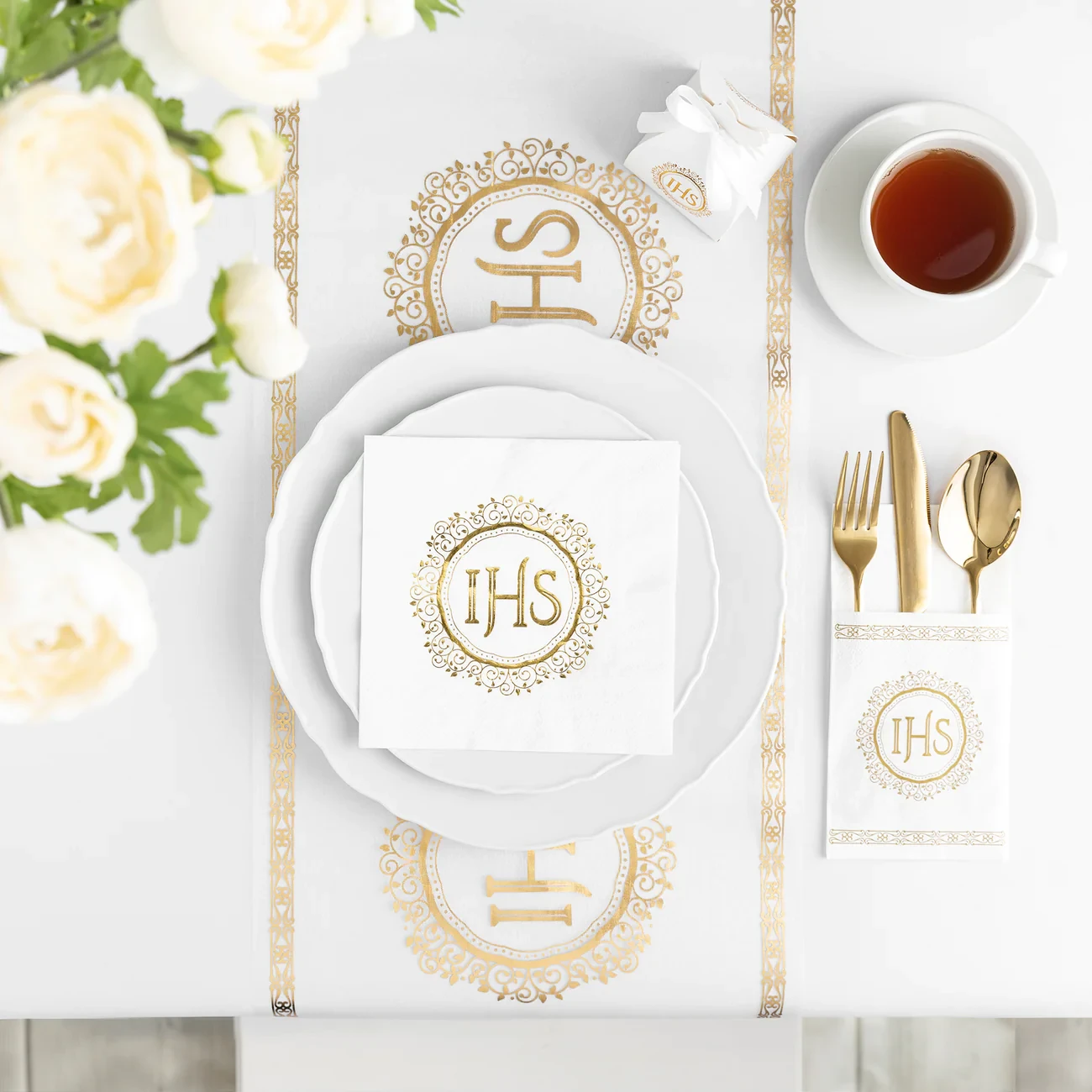 Komunijny akcent dekoracyjny, serwetki IHS Komunia Święta
