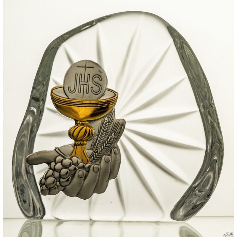 Skałka z kryształu - pamiątka I Komunia Święta 11,5x10,5cm