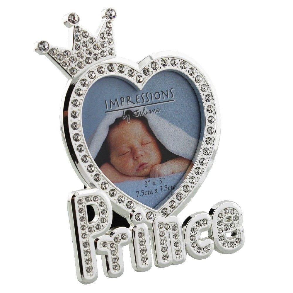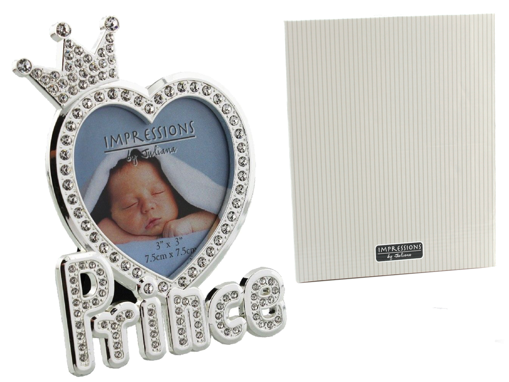 Ta wspaniała ramka na zdjęcie jest idealna do pokazania zdjęcia nowonarodzonego maleństwa i stanowi wspaniały prezent dla chłopczyka. Ramka ma wymiary 7,5 cm x 7,5 cm, z otworem w kształcie serca, wysadzanym pięknymi kryształkami. Pod otworem znajduje się napis „Princ”.