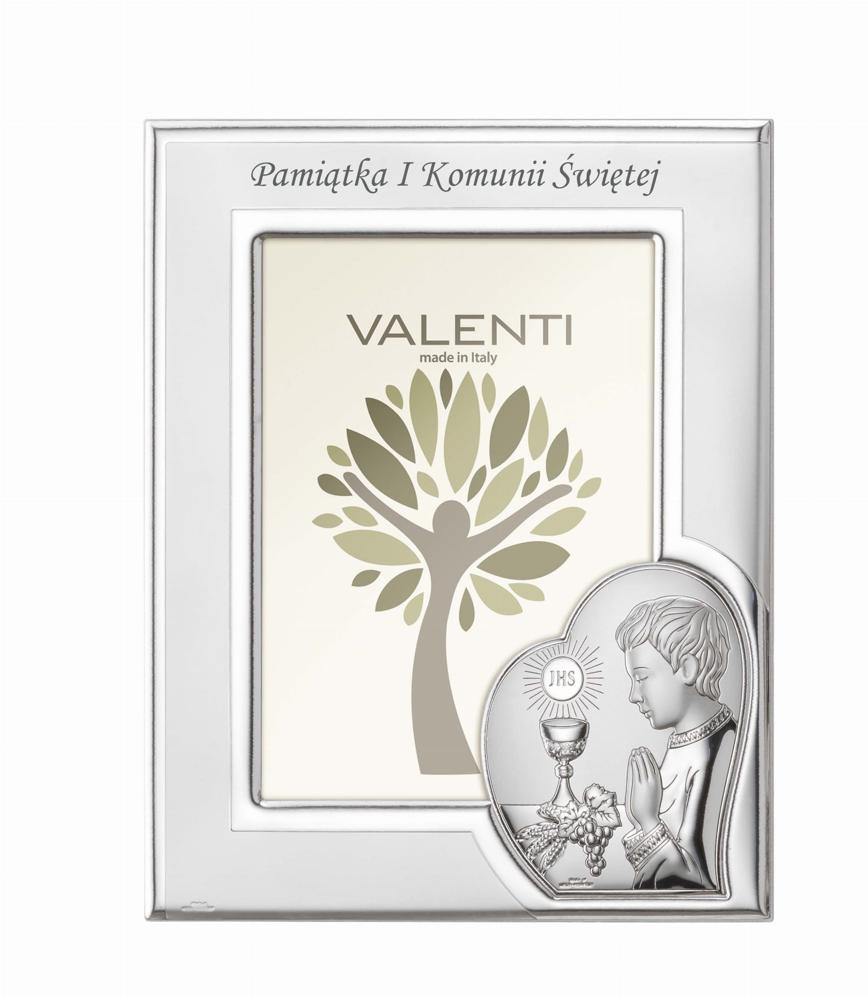 Srebrna ramka komunijna na zdjęcie IHS - chłopiec 13x18
