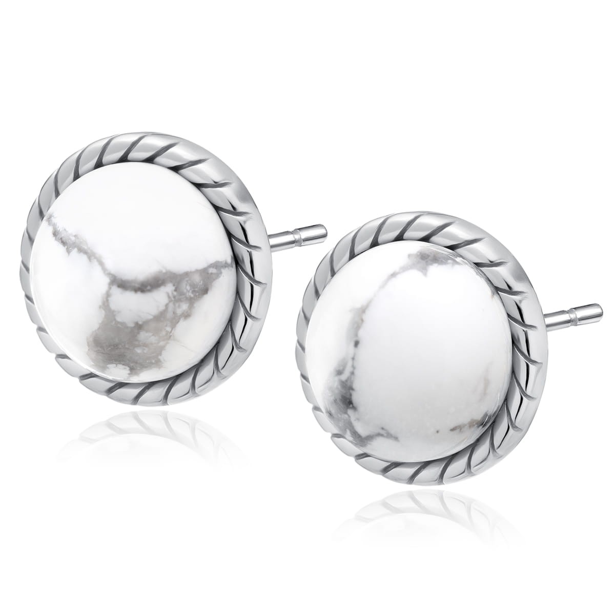 Kolczyki srebrne z białym Howlitem – srebro rodowane próby 925