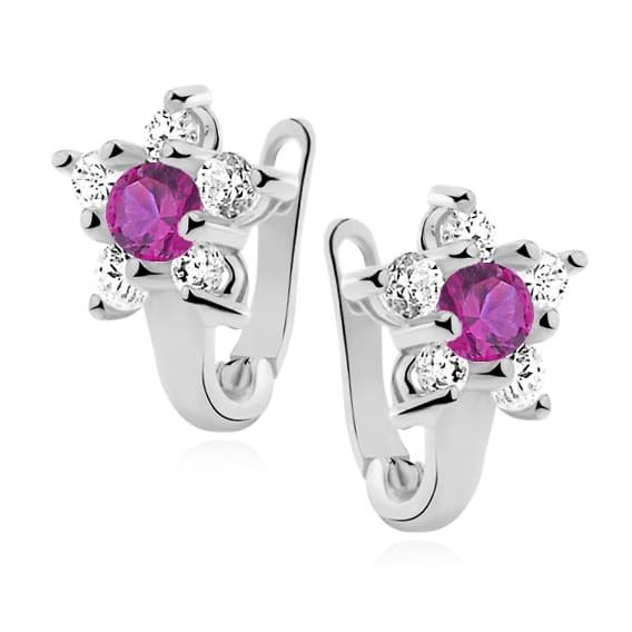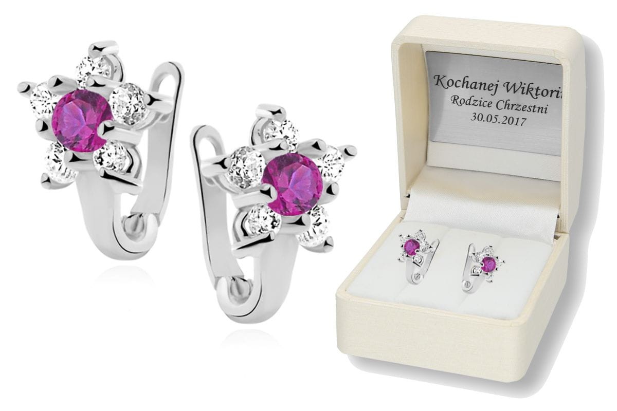 Srebrne kolczyki pr.925 w pudełku z grawerem RUBINOWA CYRKONIA