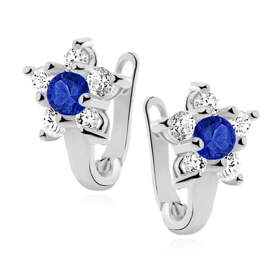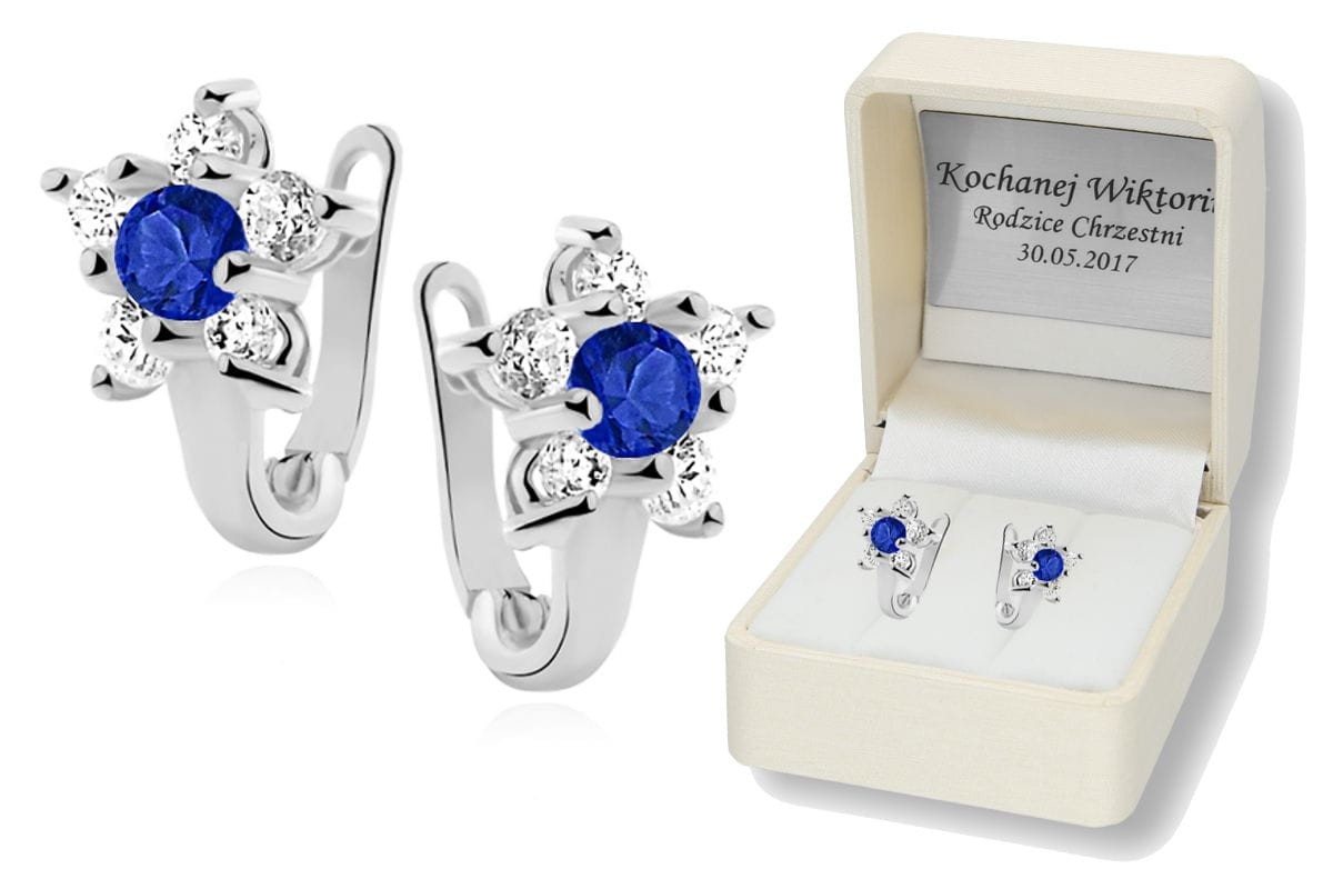 Srebrne kolczyki pr.925 w pudełku z grawerem SZAFIROWA CYRKONIA