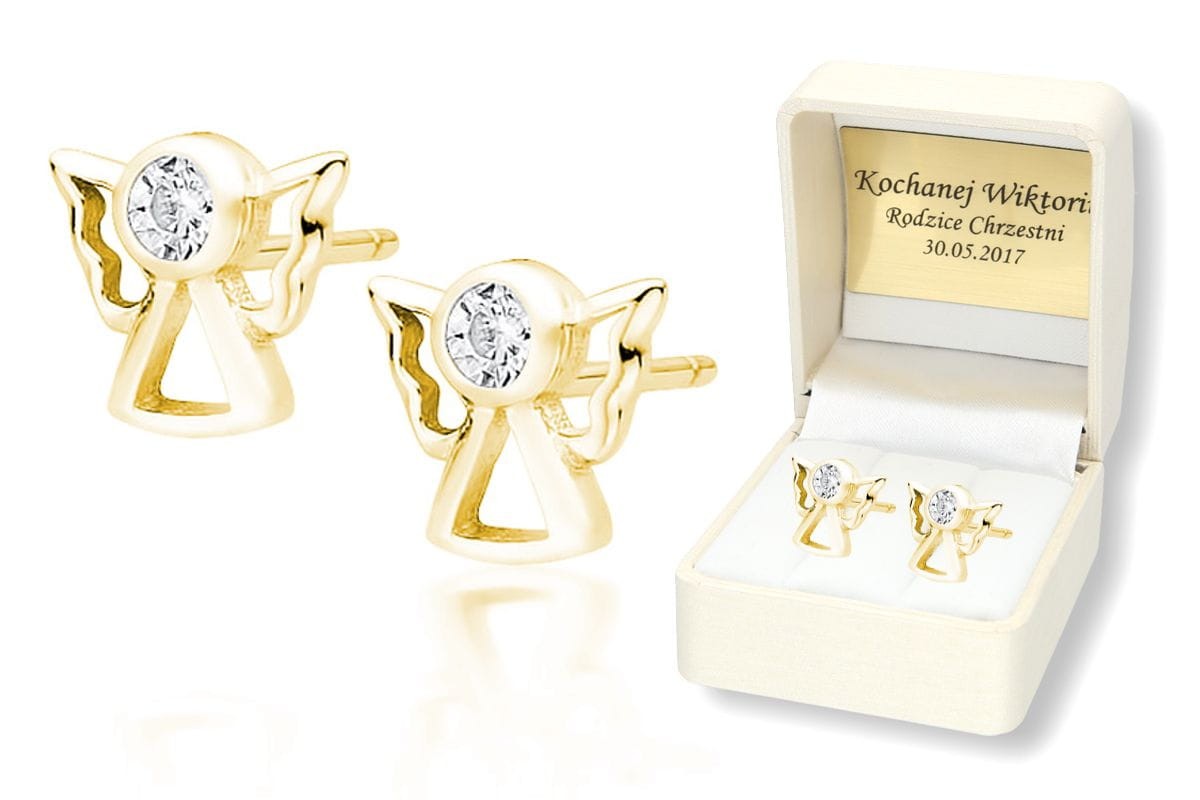 Srebrne kolczyki (złocone) pr.925 w pudełku z grawerem ANIOŁEK