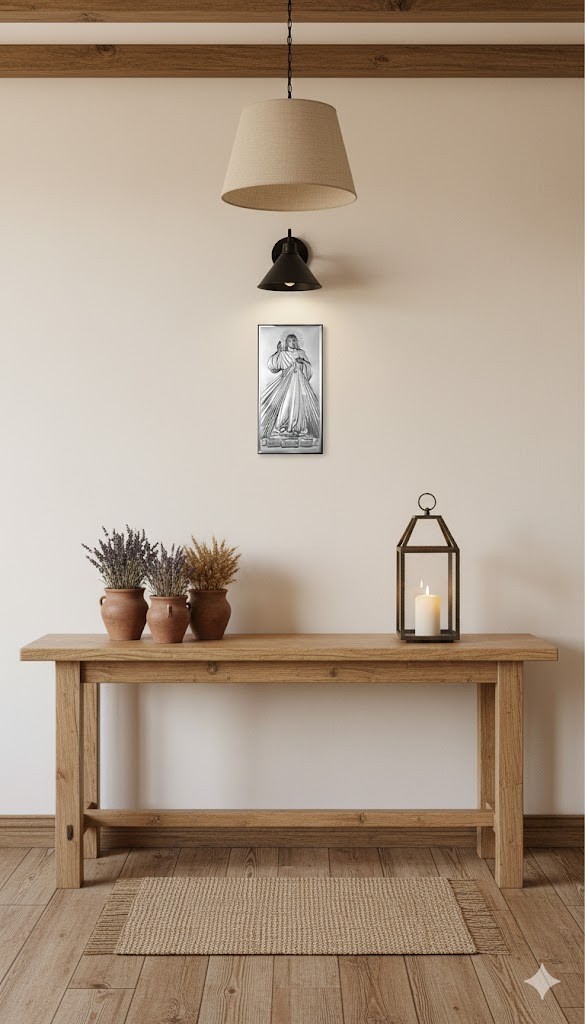 Wizerunek Jezusa Miłosiernego z napisem „Jezu Ufam Tobie” to głęboki symbol chrześcijańskiej ufności i Bożego miłosierdzia — oparty na objawieniach św. Faustyny Kowalskiej, przypominający, że Jezus jest źródłem łaski, światła i pokoju. Obrazek w domu staje się znakiem duchowej ochrony, zaproszeniem do modlitwy i refleksji nad miłością Chrystusa.