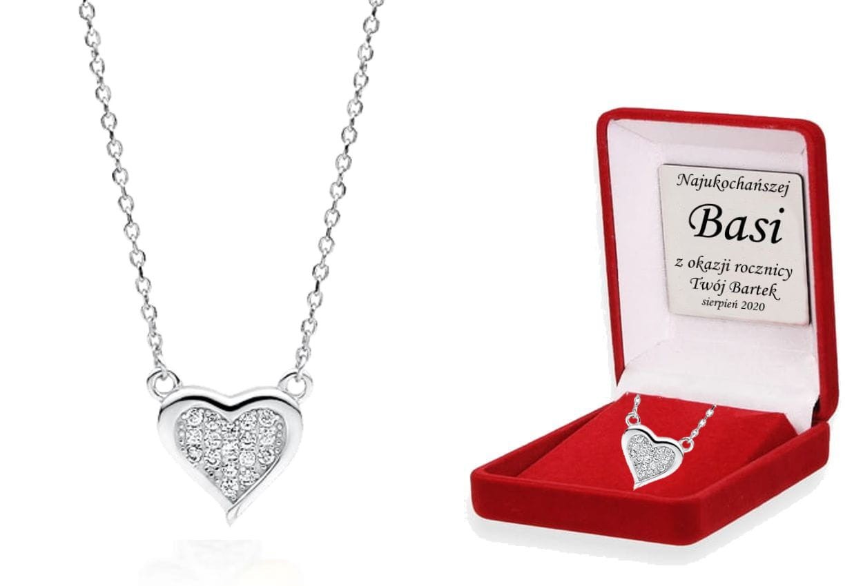 Srebrny łańcuszek i zawieszka SERCE z cyrkoniami będzie znakomitym prezentem na każdą okazję. Zestaw umieszczony jest w ozdobnym pudełeczku, co sprawia, że otrzymujesz produkt gotowy do podarowania. Skorzystaj z możliwości wygrawerowania własnych życzeń na tabliczce, którą umieścimy wewnątrz eleganckiego opakowania. Sprawisz, że podarunek stanie się sentymentalną pamiątką do końca życia.