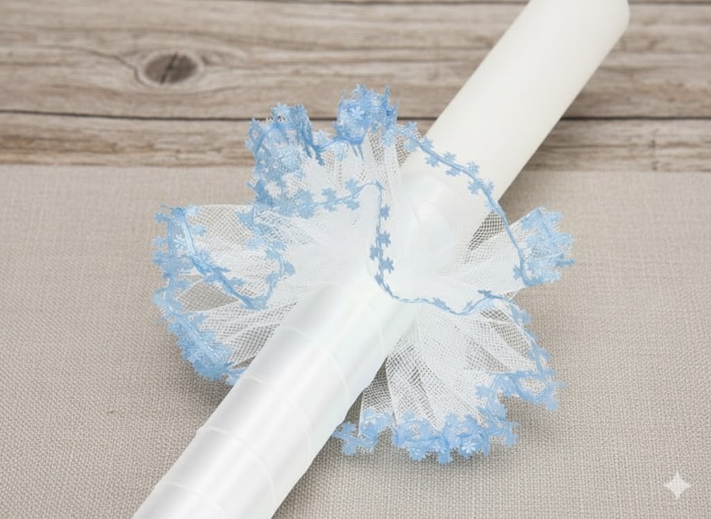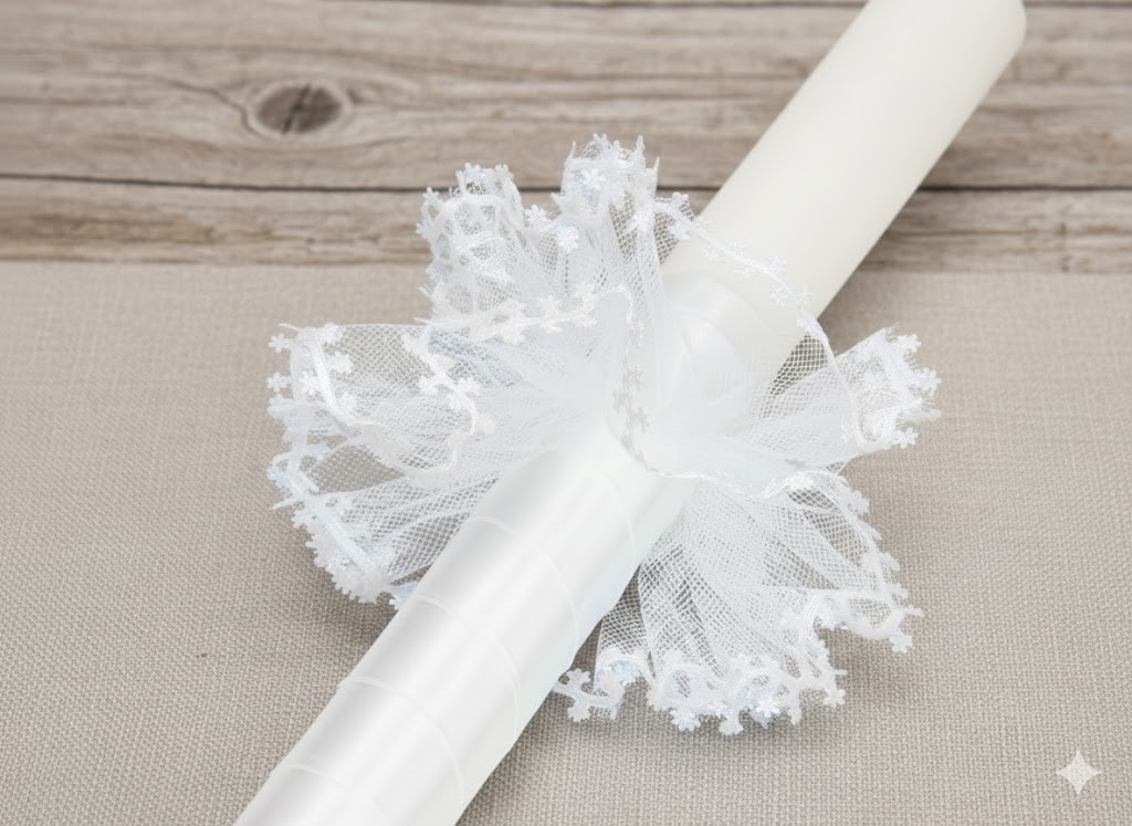 Stroik do świecy chrzcielnej z szyfonu – delikatna ozdoba sakramentalna