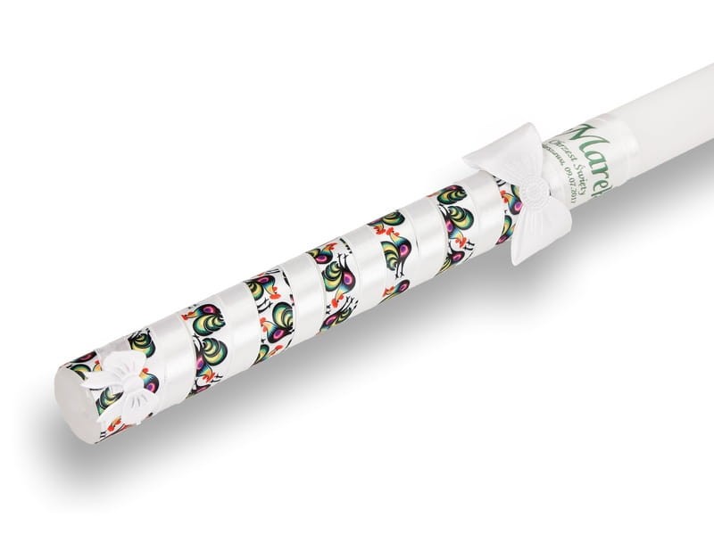 Inspirowana sztuką ludową świeca do Chrztu Świętego - rękodzieło promujące polską sztukę ludową.