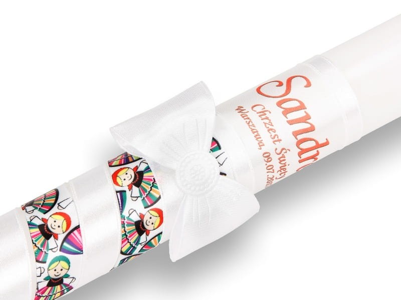 Inspirowana sztuką ludową świeca do Chrztu Świętego - rękodzieło promujące polską sztukę ludową.
