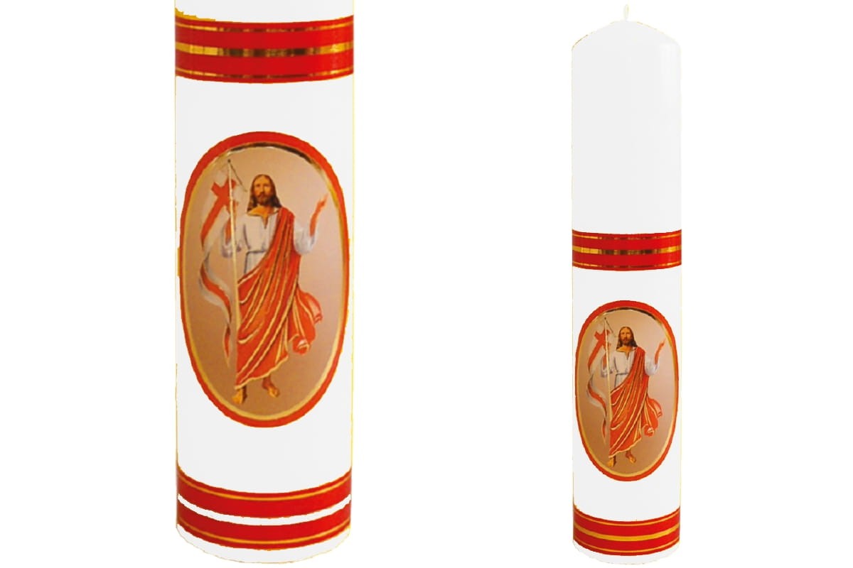 Świeca ołtarzowa z wizerunkiem Pan Jezus Zmartwychwstały