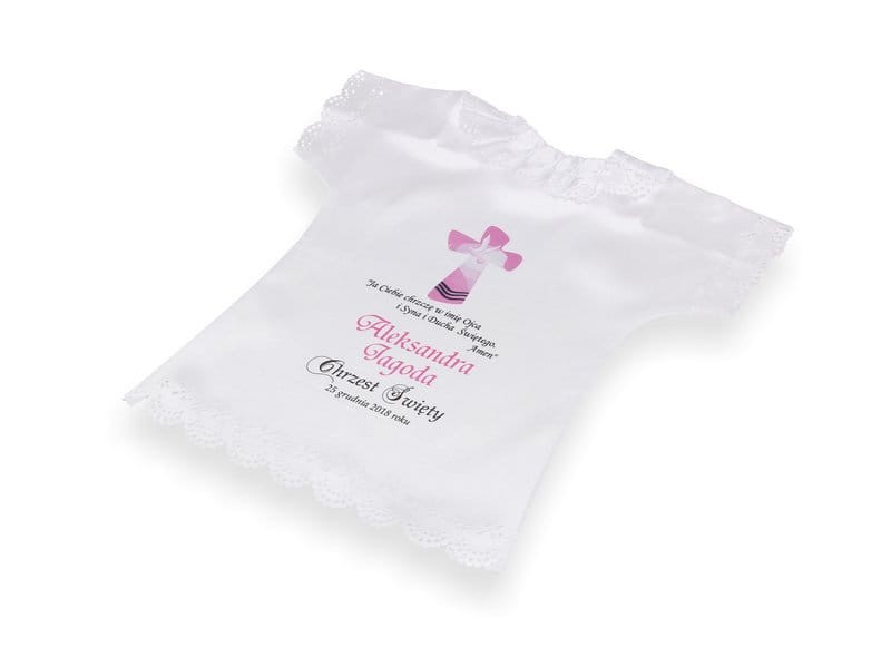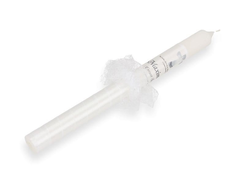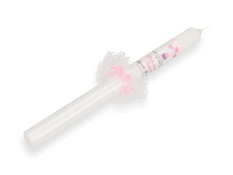 Świeca i szatka do chrztu z imieniem i ozdobnym stroikiem MGIEŁKA (szatka)