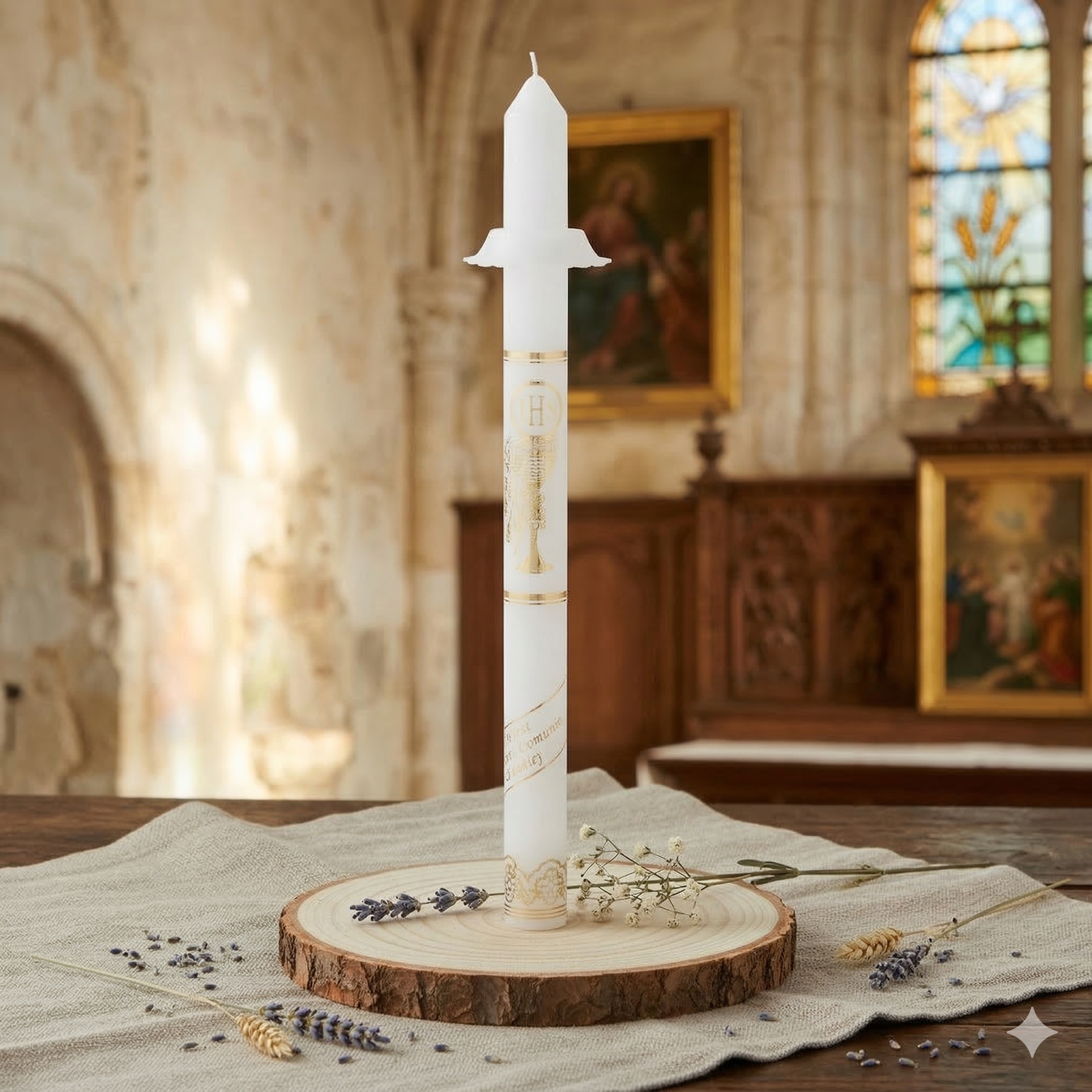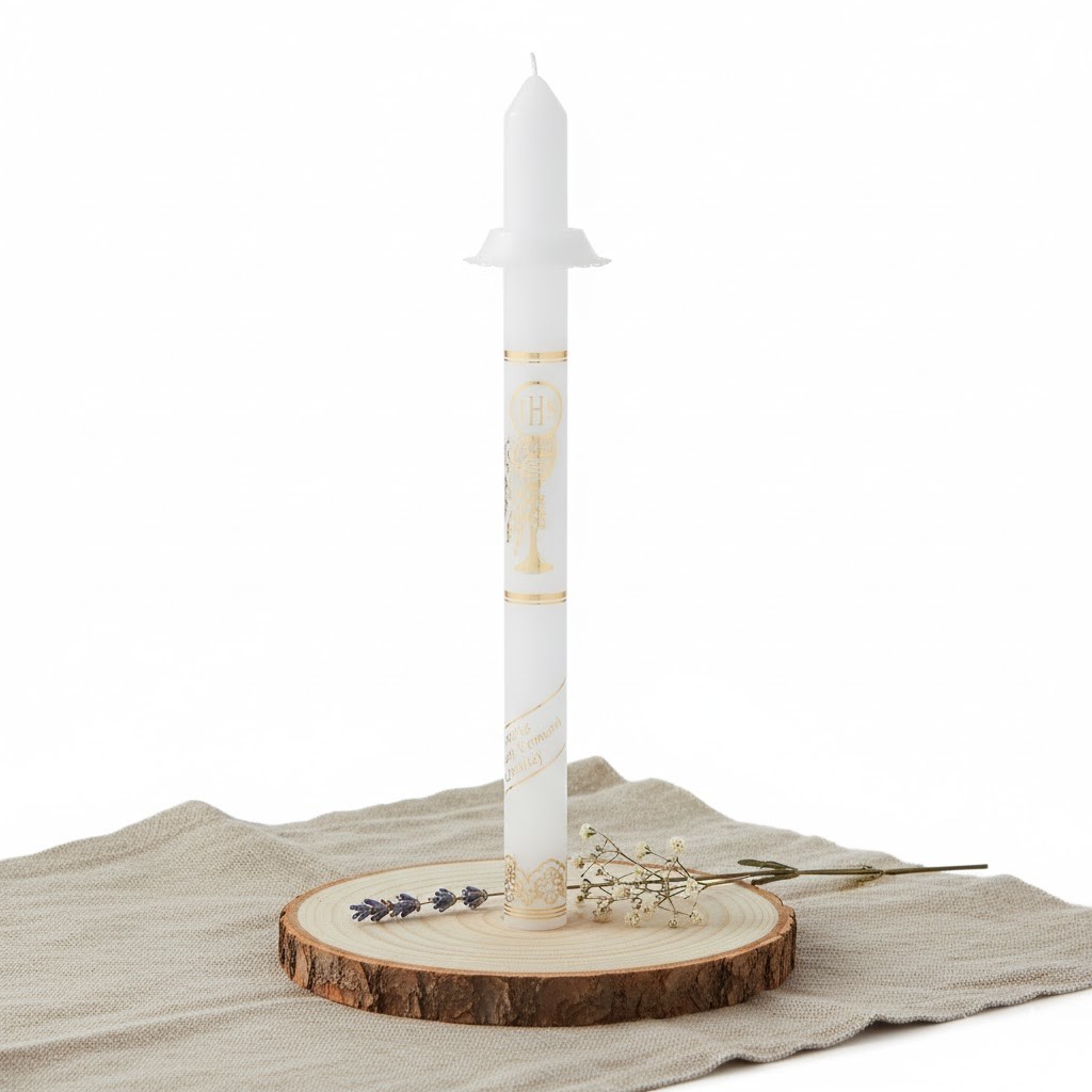 Podczas Pierwszej Komunii Świętej dziecko po raz pierwszy w pełni uczestniczy w Eucharystii. Świeca komunijna jest czytelnym i pięknym symbolem tego wydarzenia — oznacza światło Chrystusa, które ma prowadzić młodego człowieka przez całe życie. To znak wiary, nadziei i duchowego wzrastania.