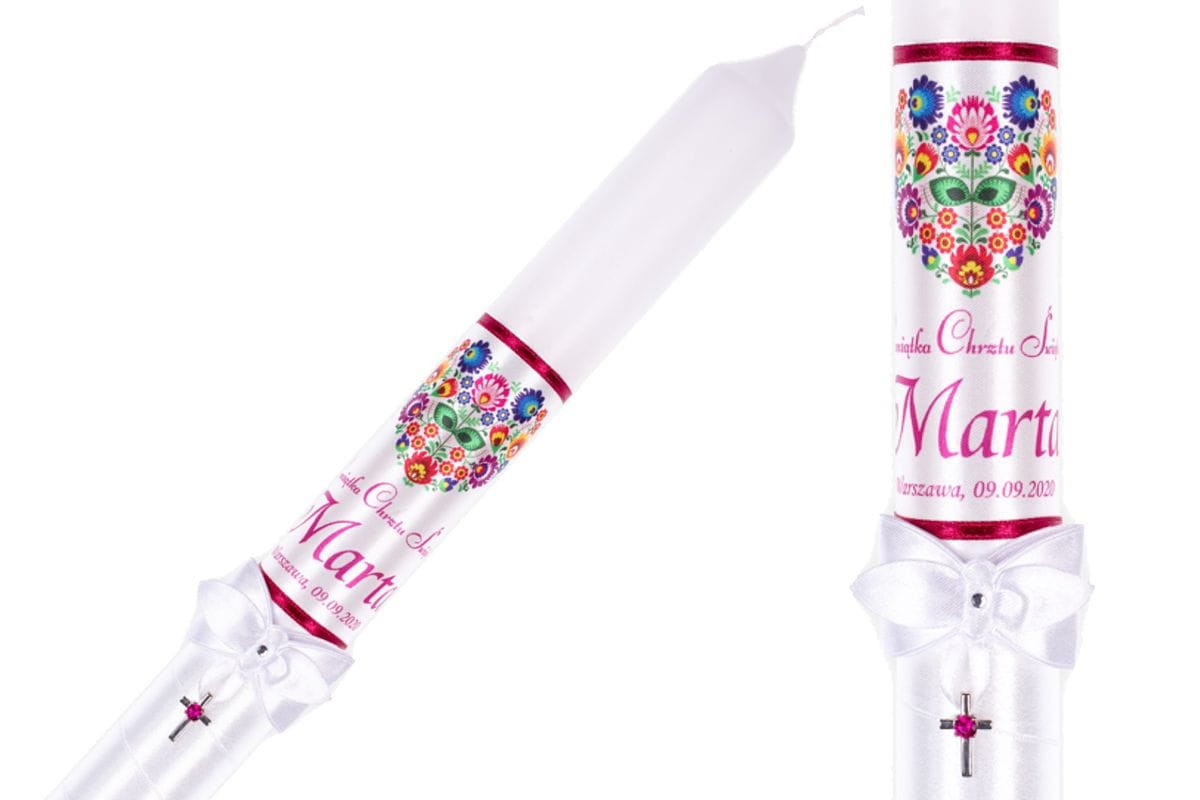 Inspirowana sztuką ludową świeca do Chrztu Świętego - rękodzieło promujące polską sztukę ludową