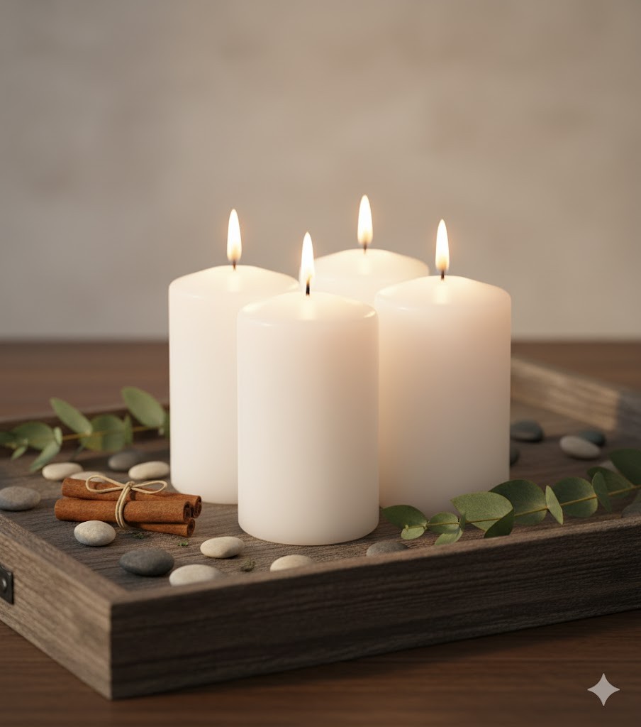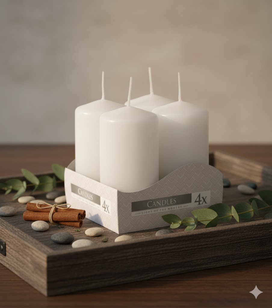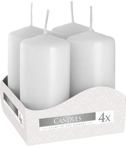 Świeca walec biała – 4 sztuki w zestawie, wys. 8 cm