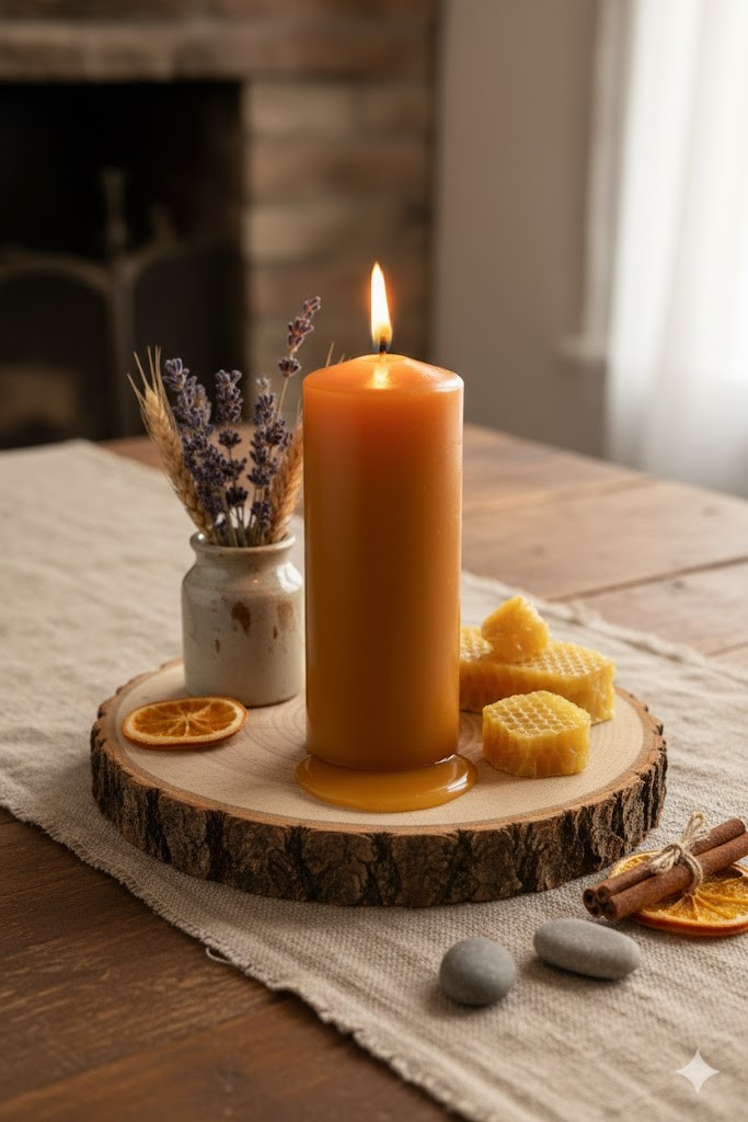 Świeca woskowa słupek z wosku pszczelego 15 cm
