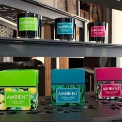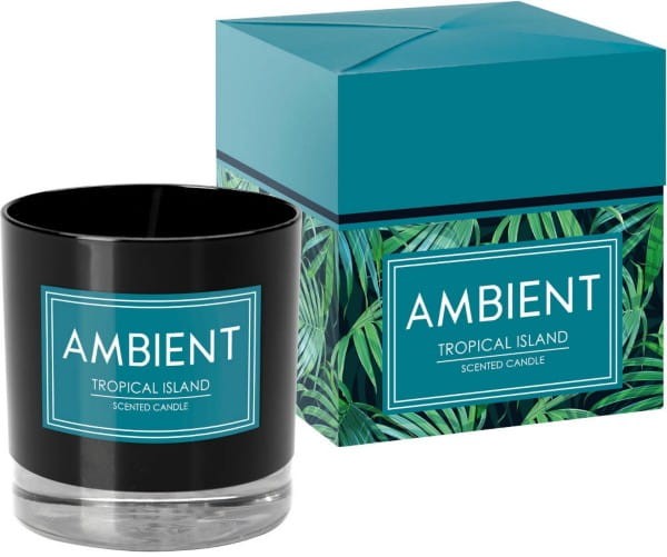 Świeca z kolekcji Ambient w czarnym eleganckim szkle z etykietą i kolorową zalewą. Luksusowa, owocowo-ziołowa kompozycja kojąca zmysły. Orzeźwia, relaksuje i jednocześnie przenosi umysł w stan odprężenia. Świece zapachowe ozdobne w szkle AMBIENT to wspaniałe rozwiązanie aranżacji wnętrz jak również formy prezentu dla bliskich. Kolekcja świec AMBIENT to trzy wyjątkowe propozycje zapachowe. Połączenie czarnego, eleganckiego szkła, kolorowej zalewy oraz nowoczesnej etykiety sprawią, że stanowią one idealny akcent nowoczesnych wnętrz.
