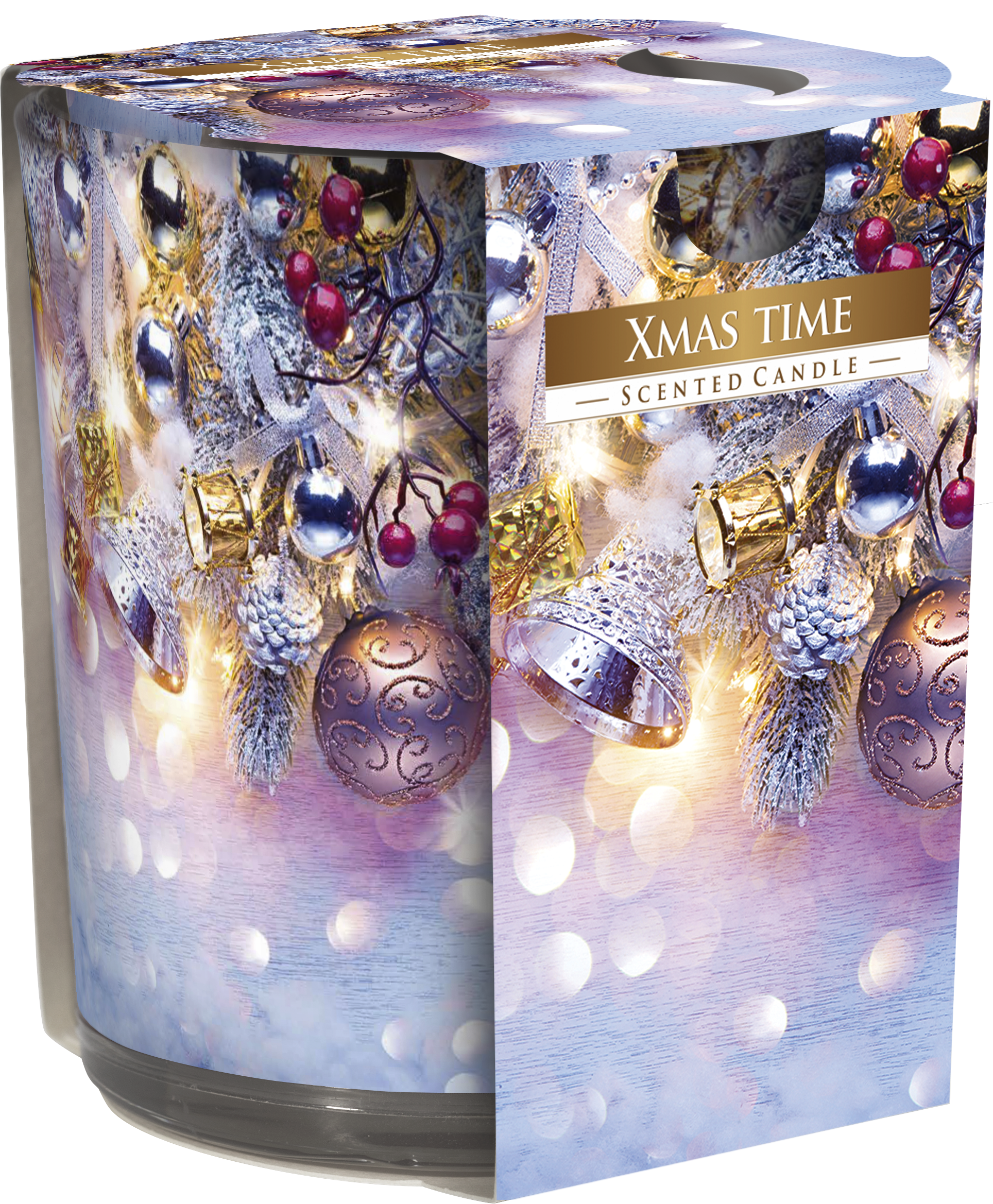 Świeca zapachowa ŚWIĄTECZNY CZAS w prostym szkle z wzorem