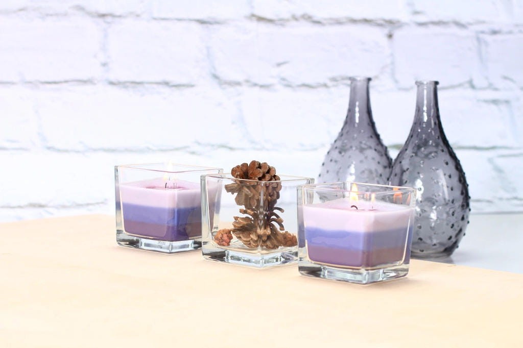 Zjawiskowa trójkolorowa świeca warstwowa z dwoma knotami. WANILIA, świeca o zapachu waniliowym zapalona w pomieszczeniu z pewnością zbuduje odprężający oraz zmysłowy nastrój. Kwadratowe szkło oraz kolorowa zalewa tworzą unikatową kompozycję. Pięknie prezentują się w każdej aranżacji dekoracyjnej ze względu na swoją prostotę i elegancję. Wzbogacona o nowy efekt dwóch knotów, tworzy niepowtarzalny klimat i gwarantuje pełne wypalenie świecy.