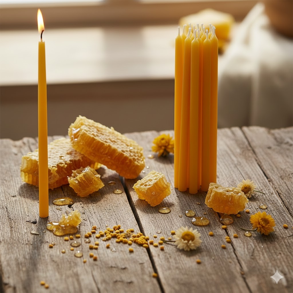 Jeśli cenisz czystość płomienia i naturalny aromat, zajrzyj do naszej kolekcji świec z wosku pszczelego. Znajdziesz tam różne formaty i rodzaje — od świec ofiarnych po cerkiewne, idealne do modlitwy i medytacji.