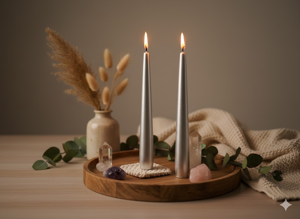 Światło świecy od wieków towarzyszy modlitwie, świętom i celebracjom, a jego jasny, równy płomień staje się znakiem pokoju, obecności Boga i duchowego skupienia, który pięknie podkreśla także srebrny blask symbolizujący czystość i odświętność.