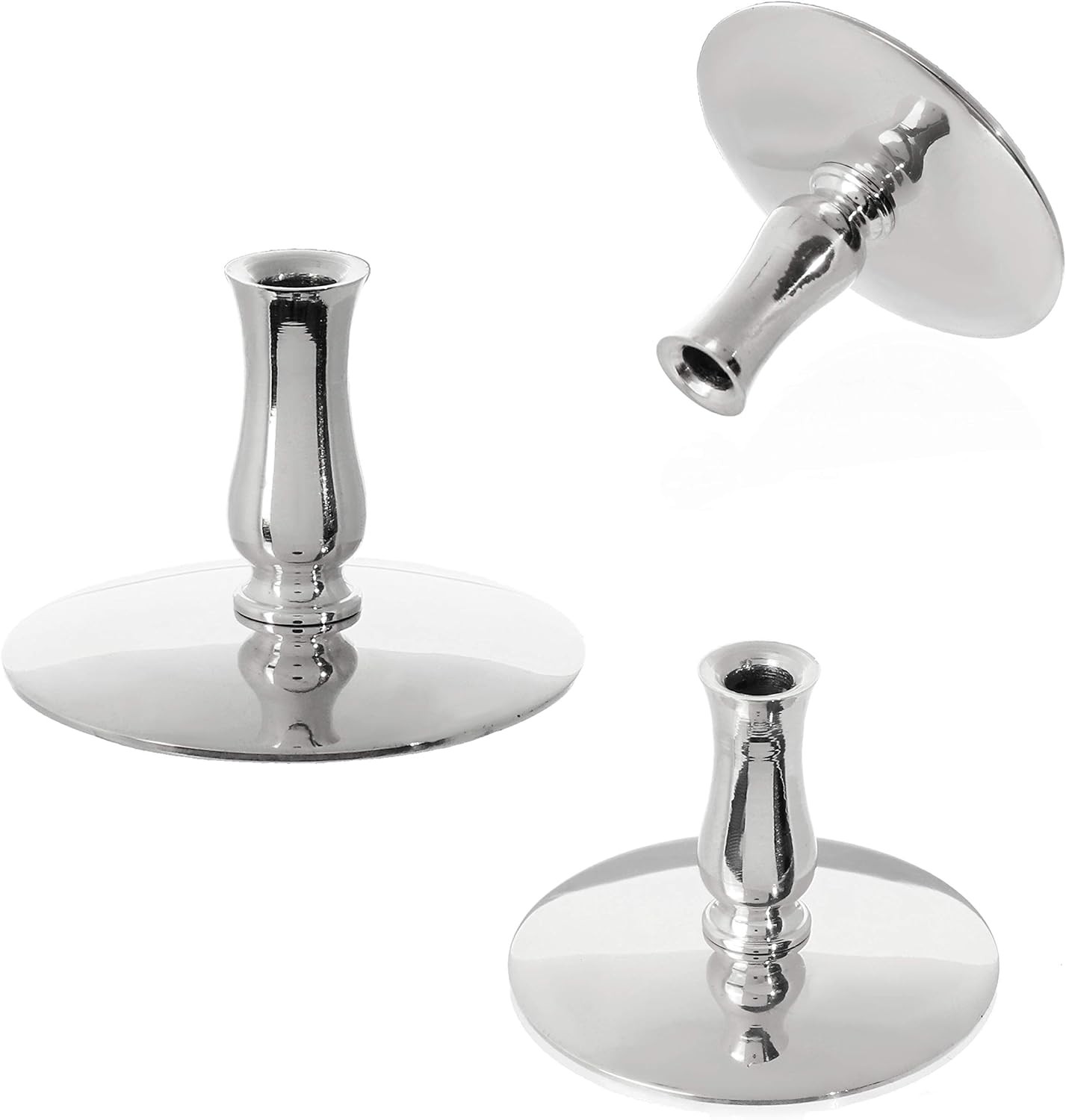 Świecznik mosiądz SREBRNY na cienkie świece ołtarzowe ofiarki rytualne do Ø 6,7 mm
