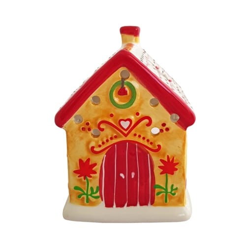 Porcelanowy domek z piernika nada świątecznego nastroju oraz będzie ładną kolorową ozdobą świąteczną.