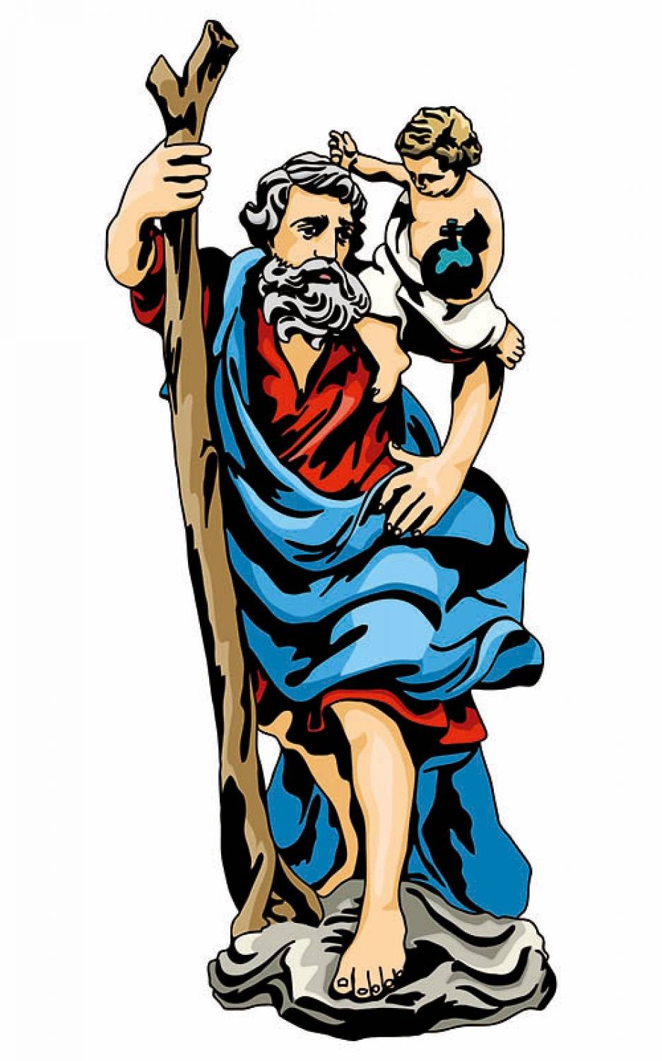 Naklejka samoprzylepna z wizerunkiem świętego Krzysztofa.