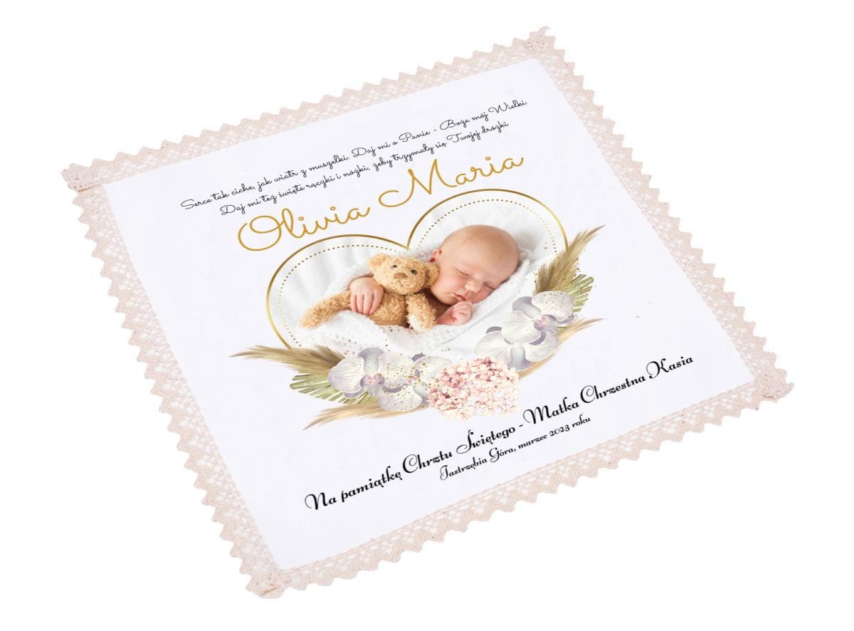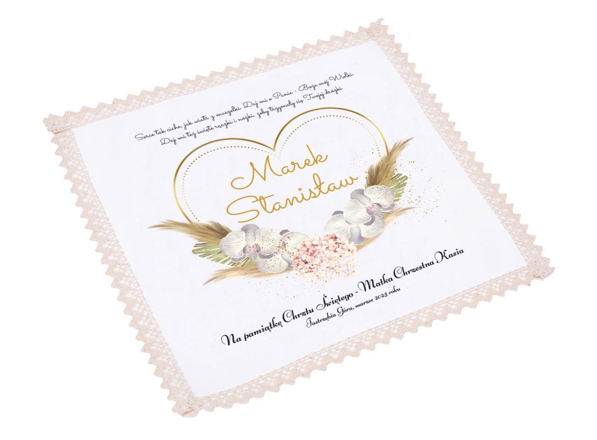 Szatka na Chrzest Święty z finezyjnym nadrukiem i personalizacją