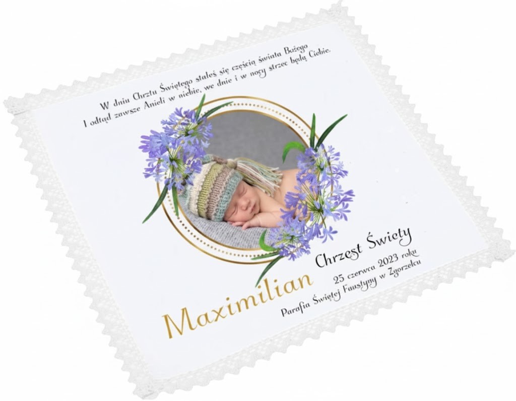 Personalizacja: możliwość nadruku zdjęcia dziecka, imienia i daty oraz nazwy parafii