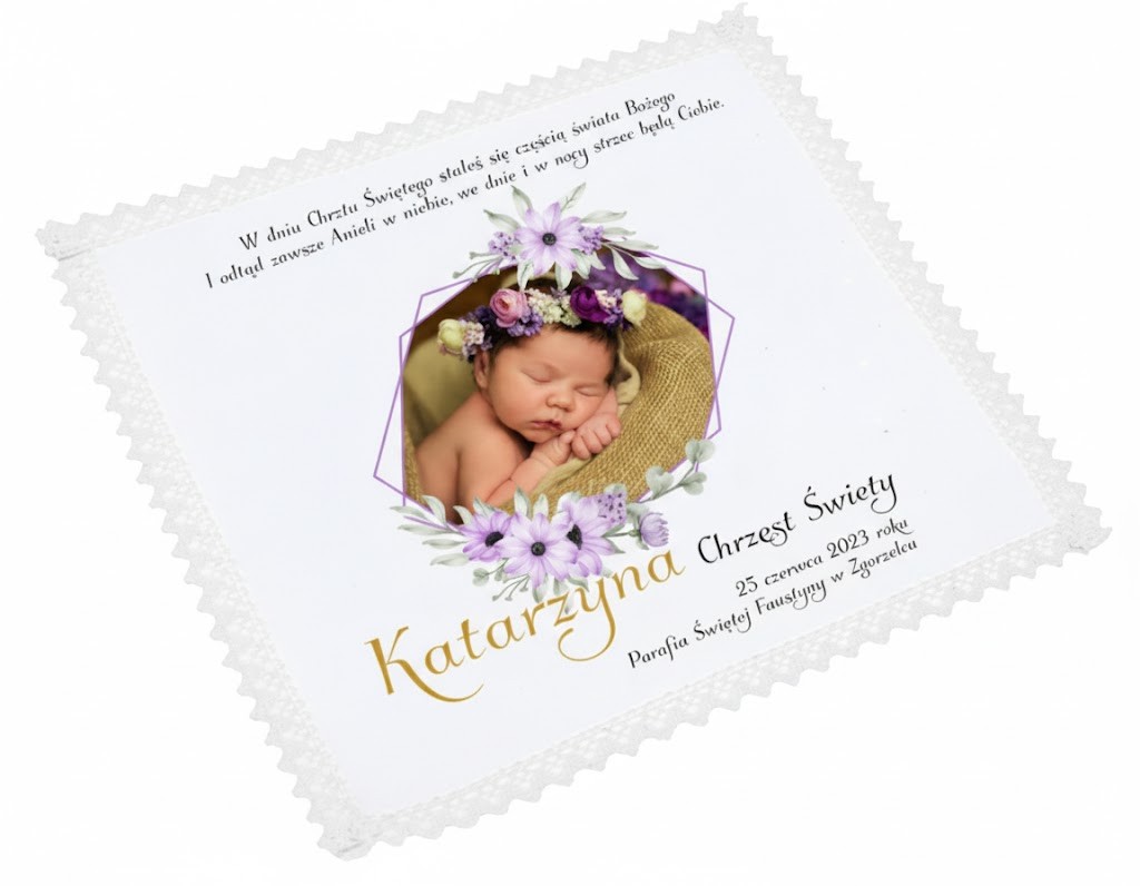 Szatka na Chrzest ZE ZDJĘCIEM – Pamiątka Chrztu Świętego