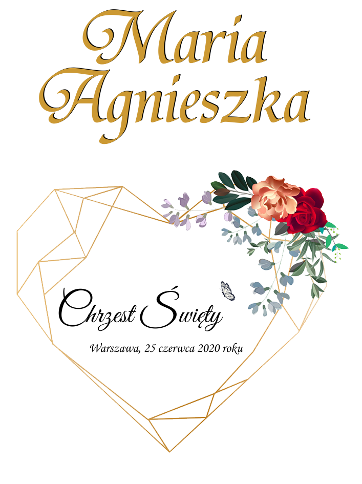 Szata wykonana z tkaniny atłasowej, z motywem Himmerli oraz personalizacją imienia i daty w stylowej aranżacji. W tym modelu został wykorzystany wzór fińskiej bryły Himmeli w odcieniu złotym wraz z kwiecistym motywem w odcieniu fuksji i pastelowych dodatków. Zgodnie z tradycją Himmeli to tradycyjne fińskie ozdoby, które przynoszą szczęście i powodzenie.