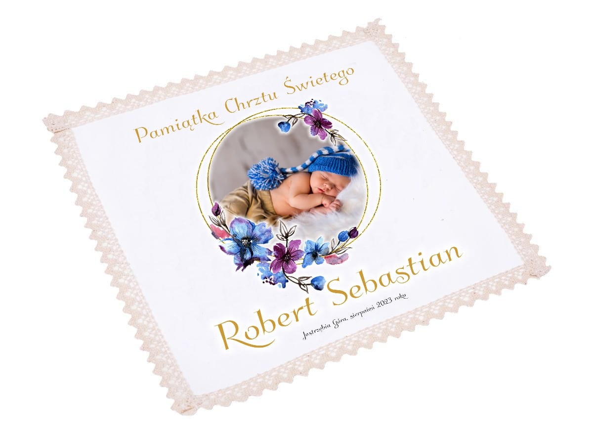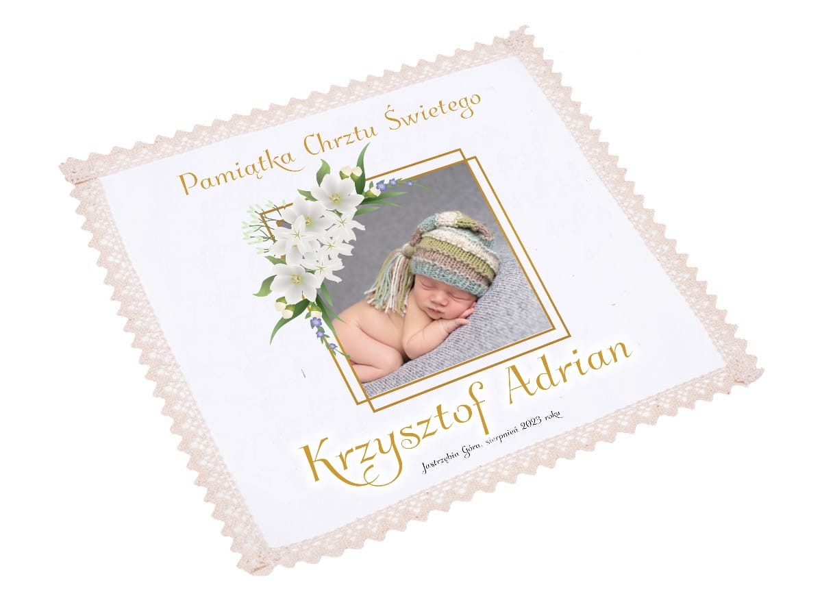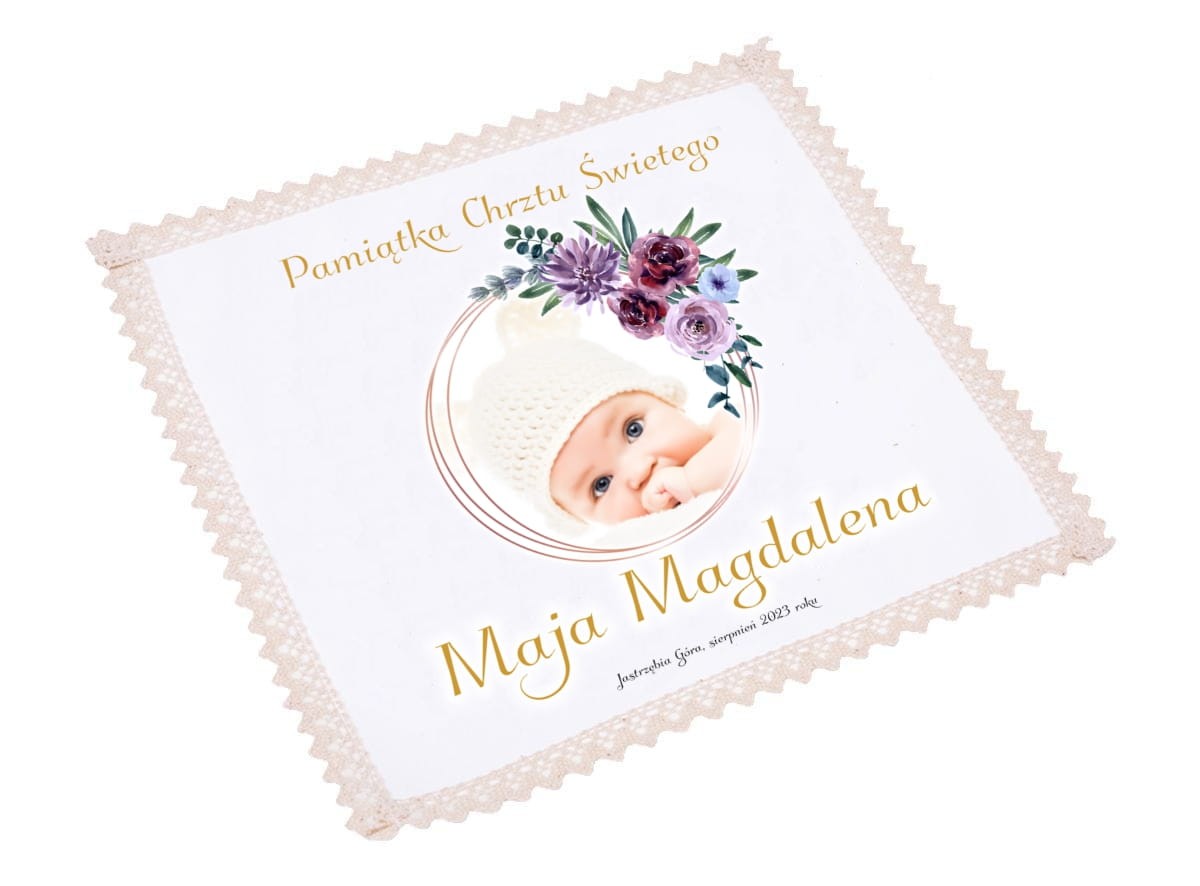Szatka na chrzest ZE ZDJĘCIEM - Pamiątka Chrztu Świętego