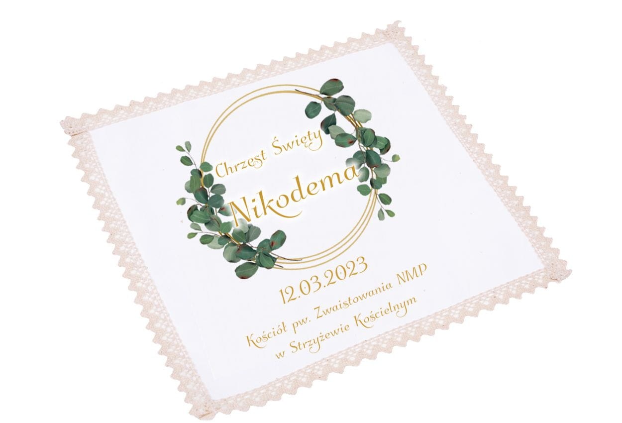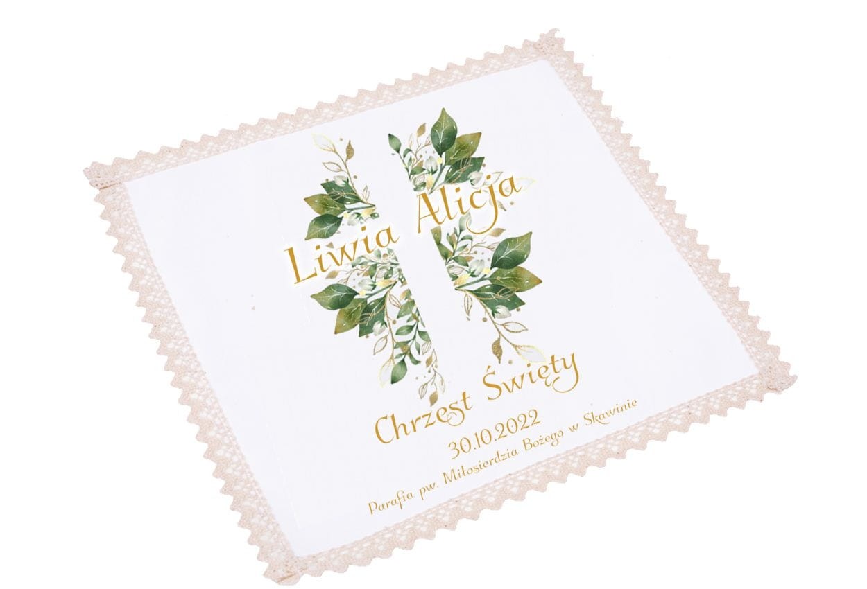 Szatka na chrzest koronka EUKALIPTUS - Pamiątka Chrztu Świętego