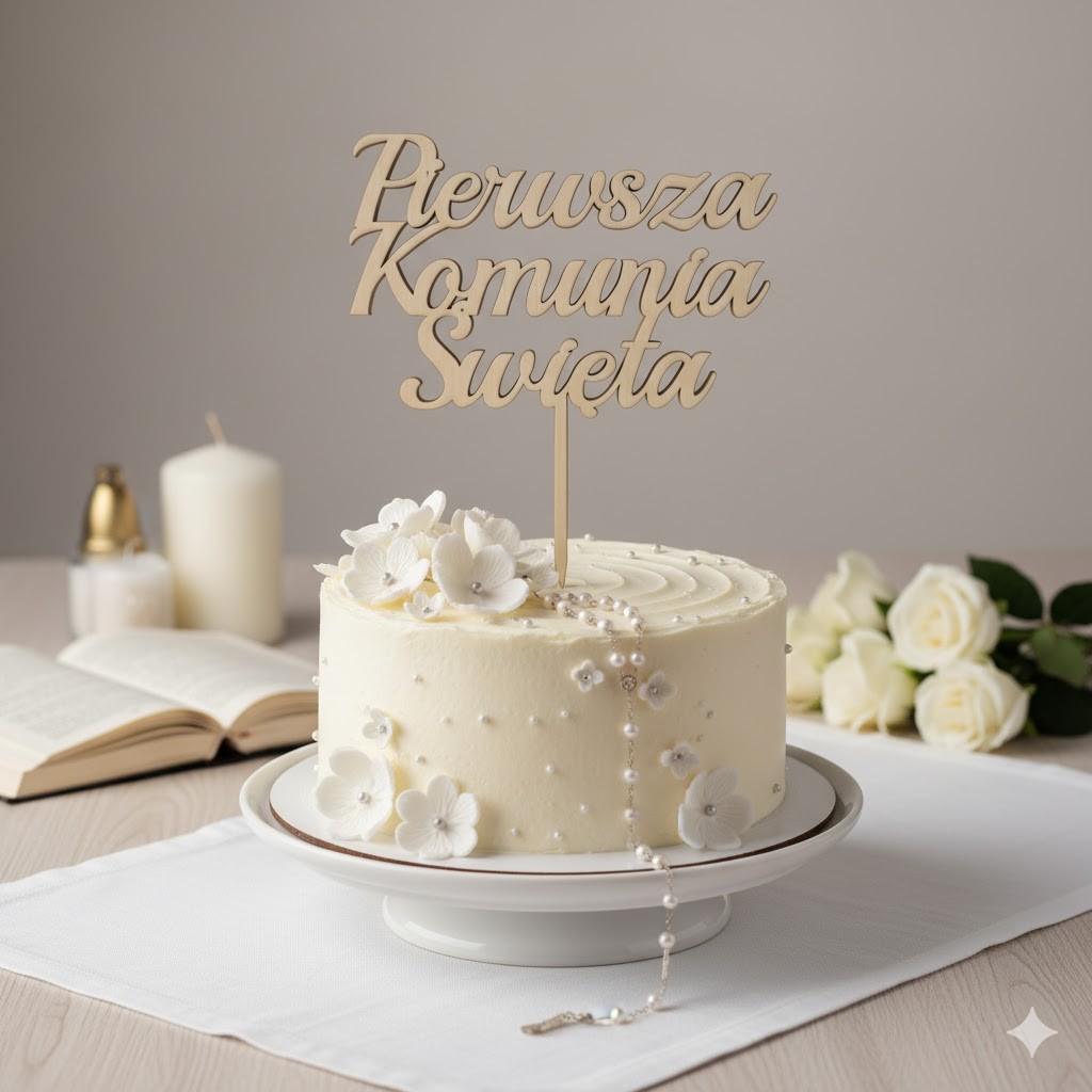 Topper można zachować jako pamiątkę — umieszczony w ramce, przy albumie pamiątkowym lub w pudełku komunijnym – staje się symbolem tego ważnego wydarzenia. Mogą go również wykorzystać rodzice, chrzestni lub dziadkowie jako część dekoracji albo drobny, ale znaczący upominek.