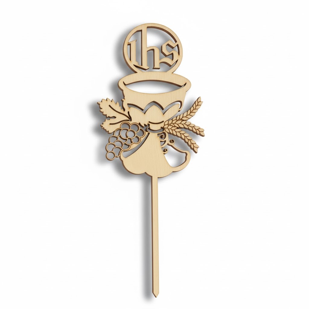 Topper drewniany „Komunia Święta” – dekoracja KIELICH