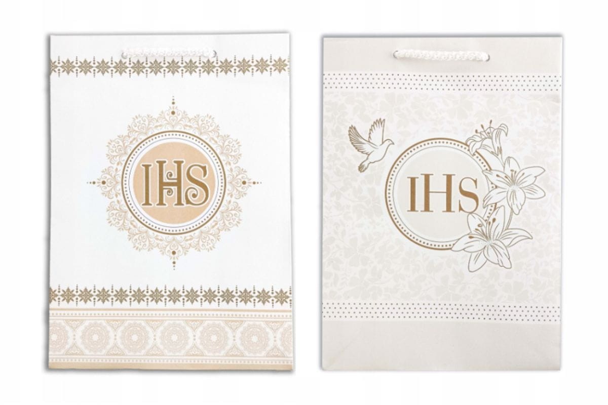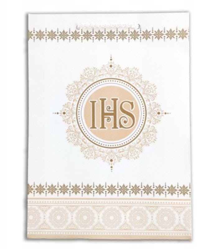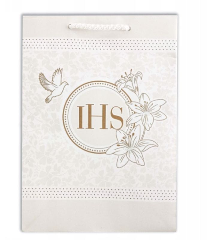 Torebka prezentowa, ozdobna średnia KOMUNIA IHS