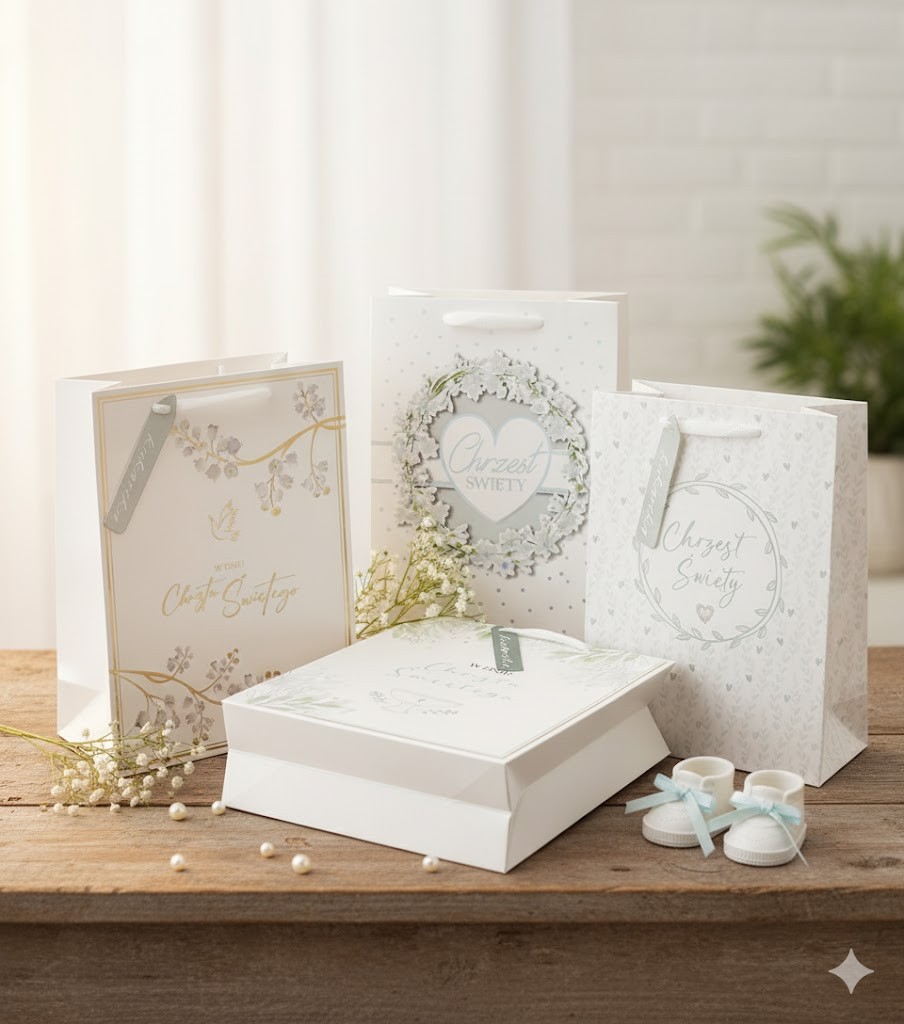 Motyw: „Chrzest Święty” — podyktowany okazją, nadaje opakowaniu głębszy, duchowy sens.